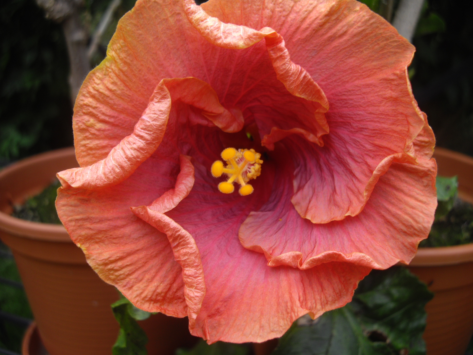 Dieses Jahr habe ich vergessen meine Hibis zurück zu schneiden und einer hat nun noch dazu Spinnmilben bekommen (die aber so gut wie besiegt sind, dank Müllbeutel-Therapie). Bei de sehen im Moment entsprechend des fehlenden Schnittes nicht sehr schön und wie ich immer sage "gakelig" aus... Astig, dünn, lang und kahl.