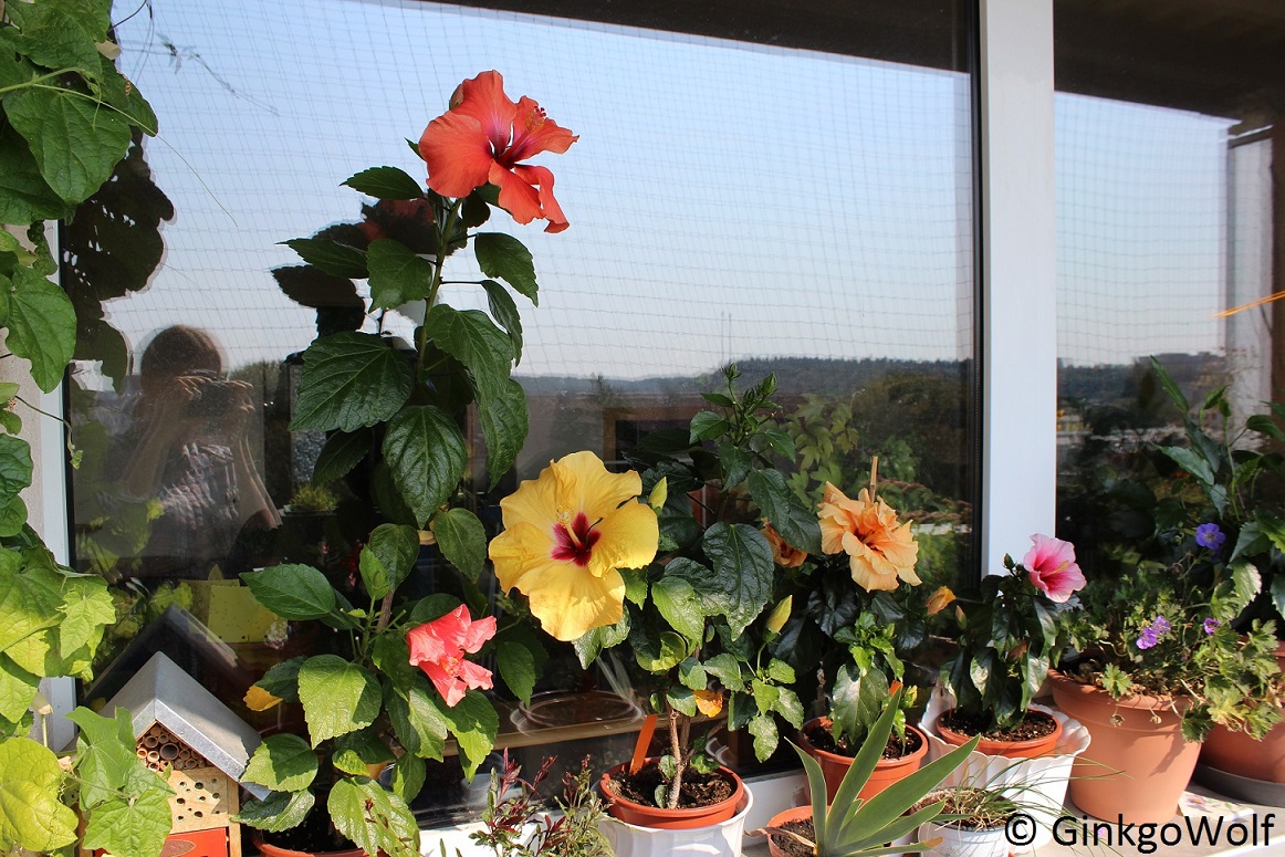 Dass meine Hibis es momentan so richtig krachen lassen, liegt aber vielmehr daran, dass ich ihnen vor etwa einer Woche pro Topf zwei Kombistäbchen reingedrückt hab. Sie hatten richtig viele Blattläuse und ich bin mit dem Abduschen einfach nicht mehr hinterhergekommen und bei dem momentanen Wetter (heiß, voll sonnig) sprühen ist auch keine so gute Idee. Deshalb also die guten Kombistäbchen.