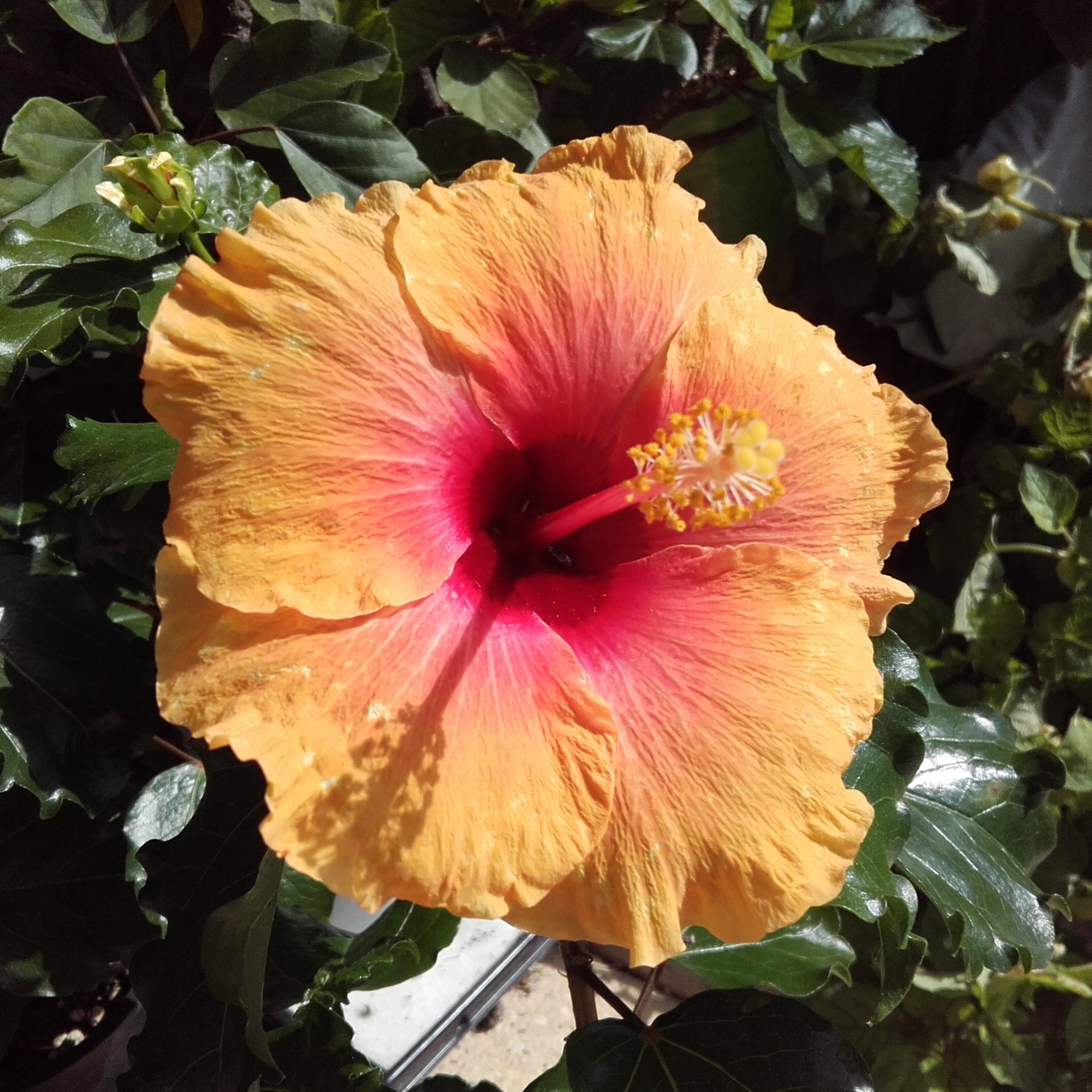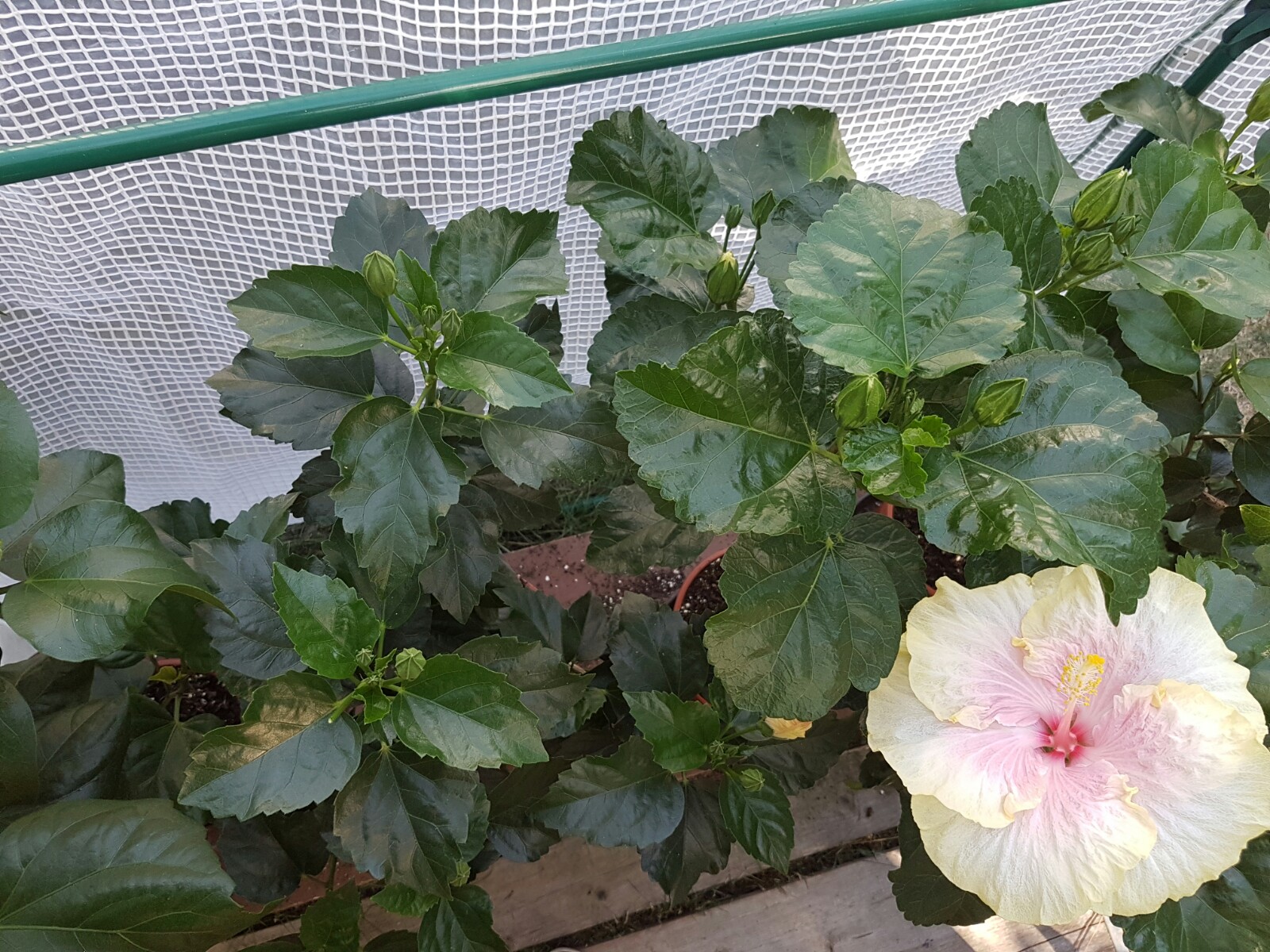 Und es wirkt auf beiden Seiten. Den Läusen vergeht der Appetit und meine Hibis blühen was der Teufel hergibt. Insbesondere der cremefarben gefüllte Hibi hat gerade zwei Blüten gleichzeitig offen. Das hat schon fast Seltenheitswert. Und die nächsten sind unterwegs.
