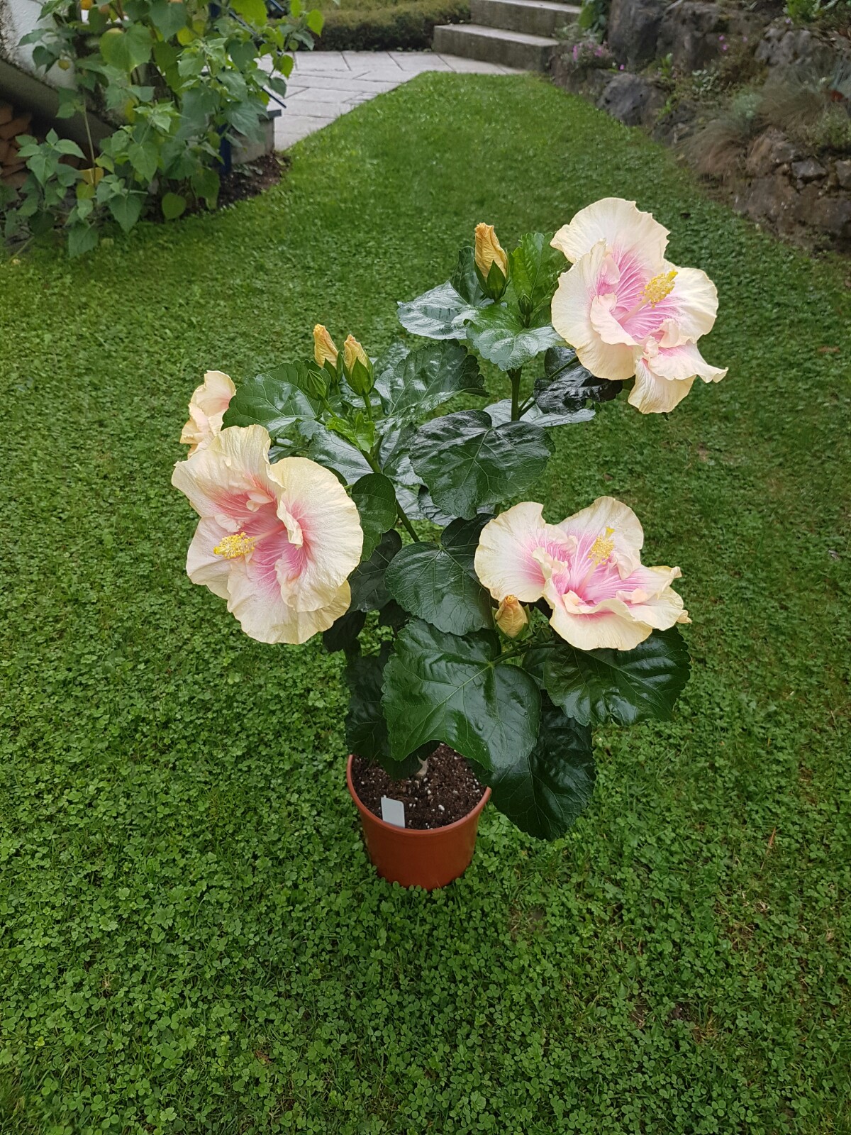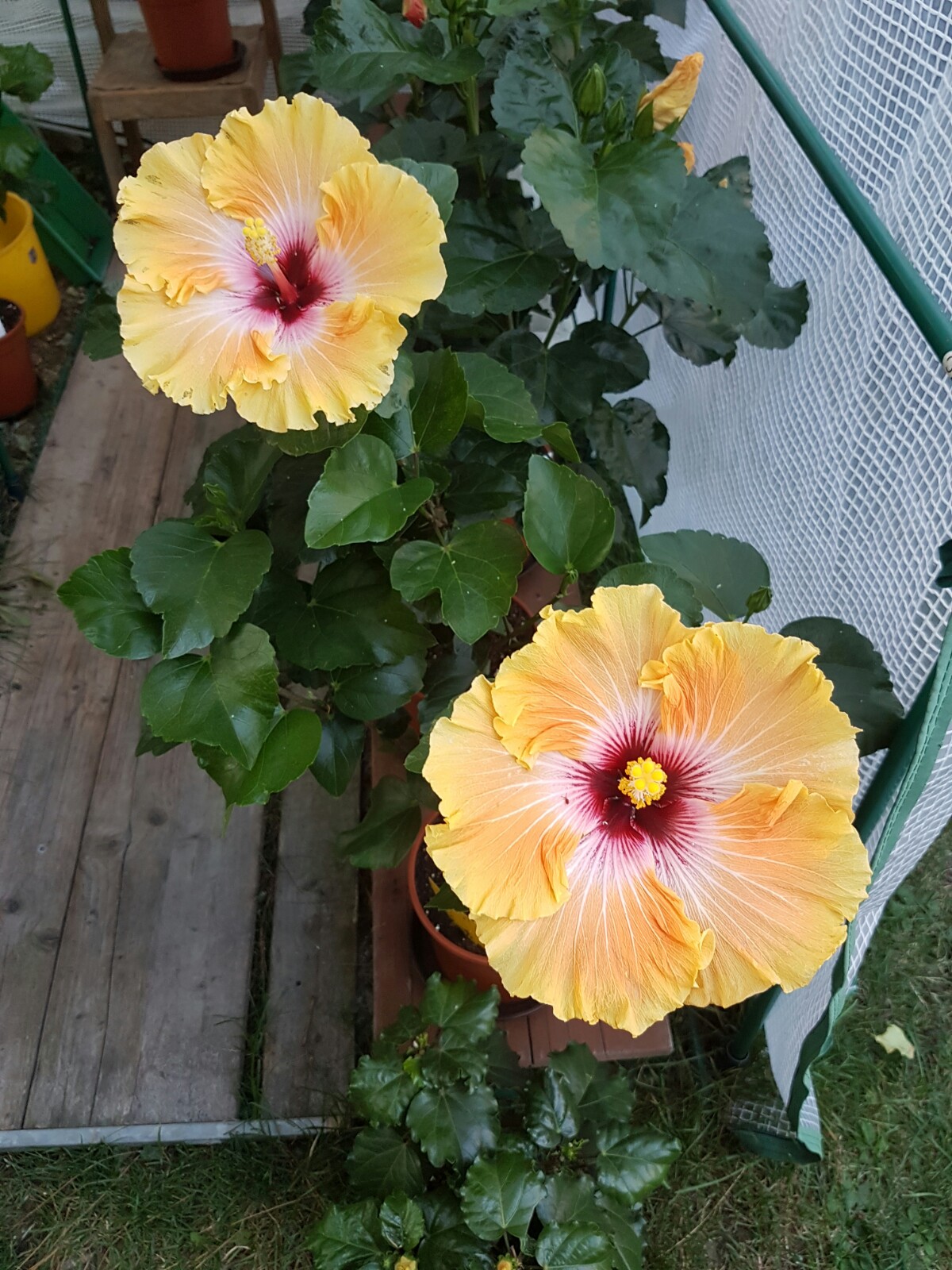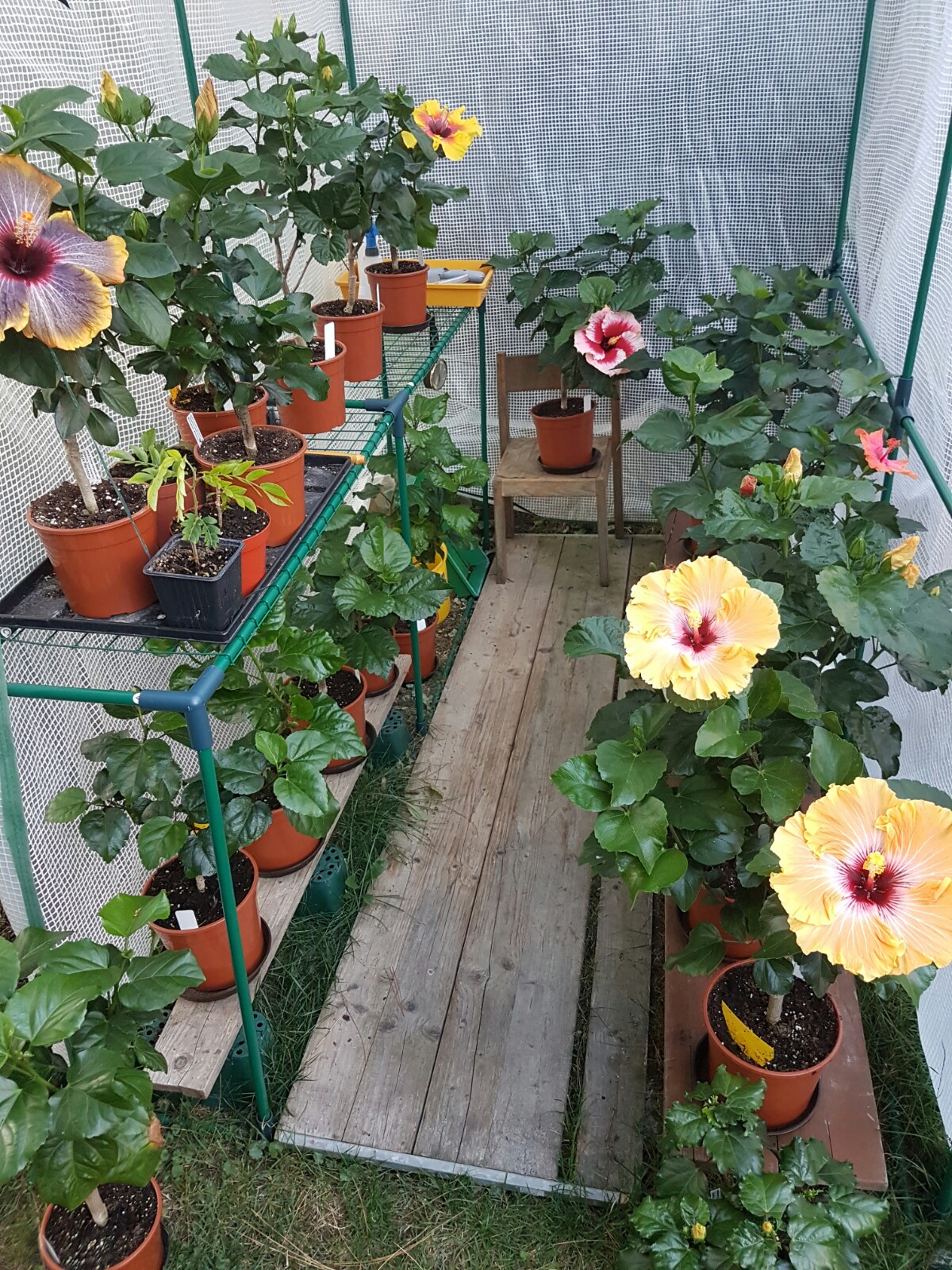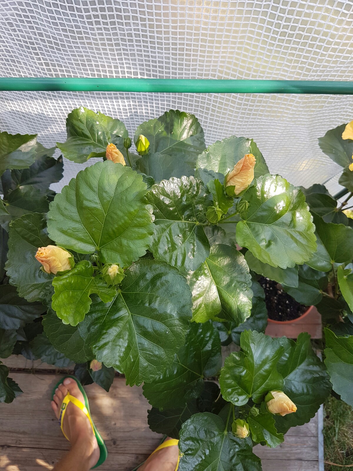 Sagenhaft schöne Blütenbilder habt Ihr:) Die Kältewelle der letzten Nächte war das erste Zeichen für die Laubbäume, dass sie bald schmeißen müssen* . Die Temperaturen haben sich ja nun wieder einigermaßen gefangen und die Hibis können das schon ab. Die nächste Woche sind es hier bei Stuttgart nicht oder selten unter 10 Grad in der Nacht, also optimal. Ich werde sie draußen lassen, bis einmal längerfristig Temperaturen unter 5 Grad angesagt sind (Allerdings stehen meine Hibiscus durchs halboffene Folienhaus noch relativ geschützt). Bei 'Erin Rachael' haben die kühlen Temperaturen von bei uns 6 Grad vor ein paar Tagen ziemlich die Blüten deformiert- ist nicht weiter schlimm. Auch der heute aufgeblühte 'Tahitian Apricot Splendor' zeigt massive Farbveränderungen. Zum Vergleich hab ich nochmal die Blüte der selben Pflanze, jedoch in der Sonne aufgeblüht. 'Black Rainbow' schafft es denke ich morgen aufzugehen...