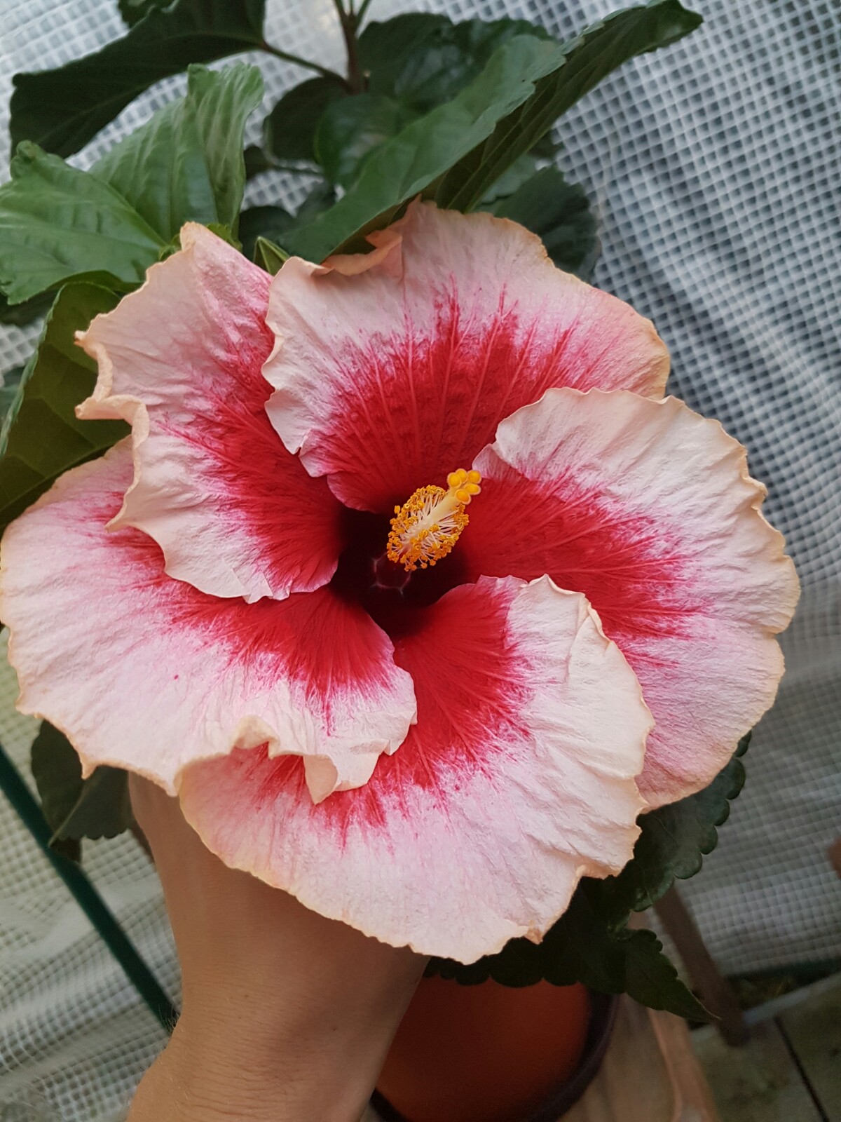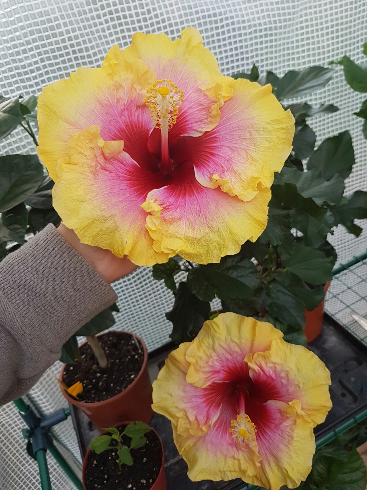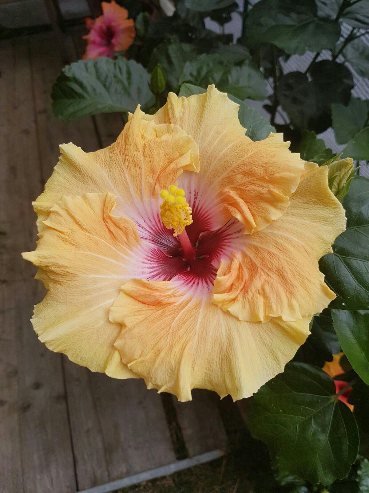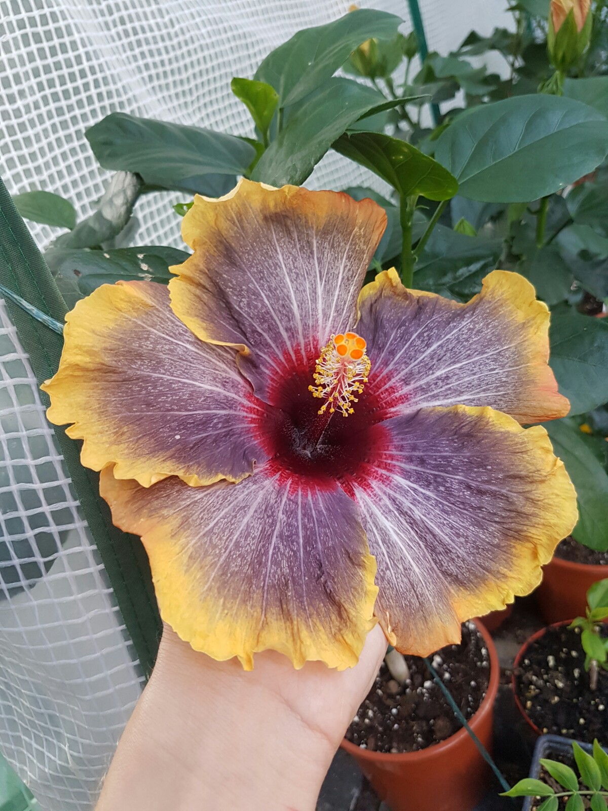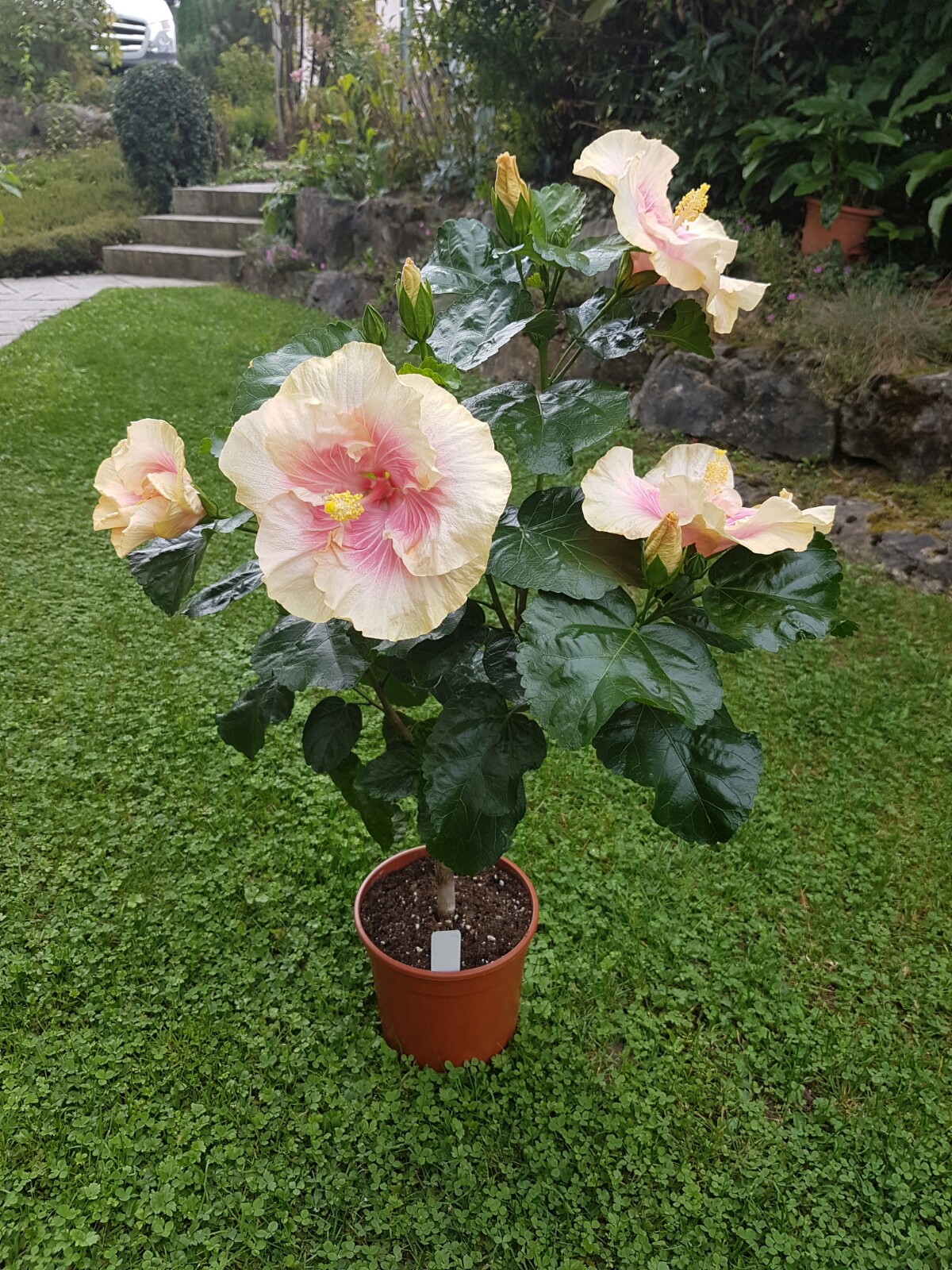 Sagenhaft schöne Blütenbilder habt Ihr:) Die Kältewelle der letzten Nächte war das erste Zeichen für die Laubbäume, dass sie bald schmeißen müssen* . Die Temperaturen haben sich ja nun wieder einigermaßen gefangen und die Hibis können das schon ab. Die nächste Woche sind es hier bei Stuttgart nicht oder selten unter 10 Grad in der Nacht, also optimal. Ich werde sie draußen lassen, bis einmal längerfristig Temperaturen unter 5 Grad angesagt sind (Allerdings stehen meine Hibiscus durchs halboffene Folienhaus noch relativ geschützt). Bei 'Erin Rachael' haben die kühlen Temperaturen von bei uns 6 Grad vor ein paar Tagen ziemlich die Blüten deformiert- ist nicht weiter schlimm. Auch der heute aufgeblühte 'Tahitian Apricot Splendor' zeigt massive Farbveränderungen. Zum Vergleich hab ich nochmal die Blüte der selben Pflanze, jedoch in der Sonne aufgeblüht. 'Black Rainbow' schafft es denke ich morgen aufzugehen...