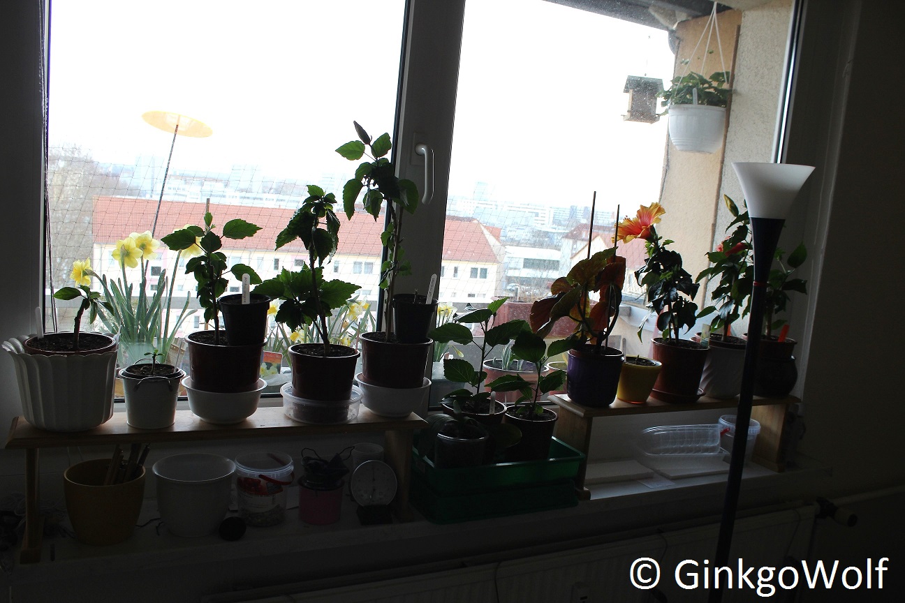 Gut, von meiner Seite aus gibt's auch nicht allzu viel zu berichten. Im Wohnzimmer, da wo meine Hibis alle stehen, heize ich kaum (nur auf niedrigster Stufe, wenn überhaupt). Deshalb wachsen und blühen sie nur wenig.