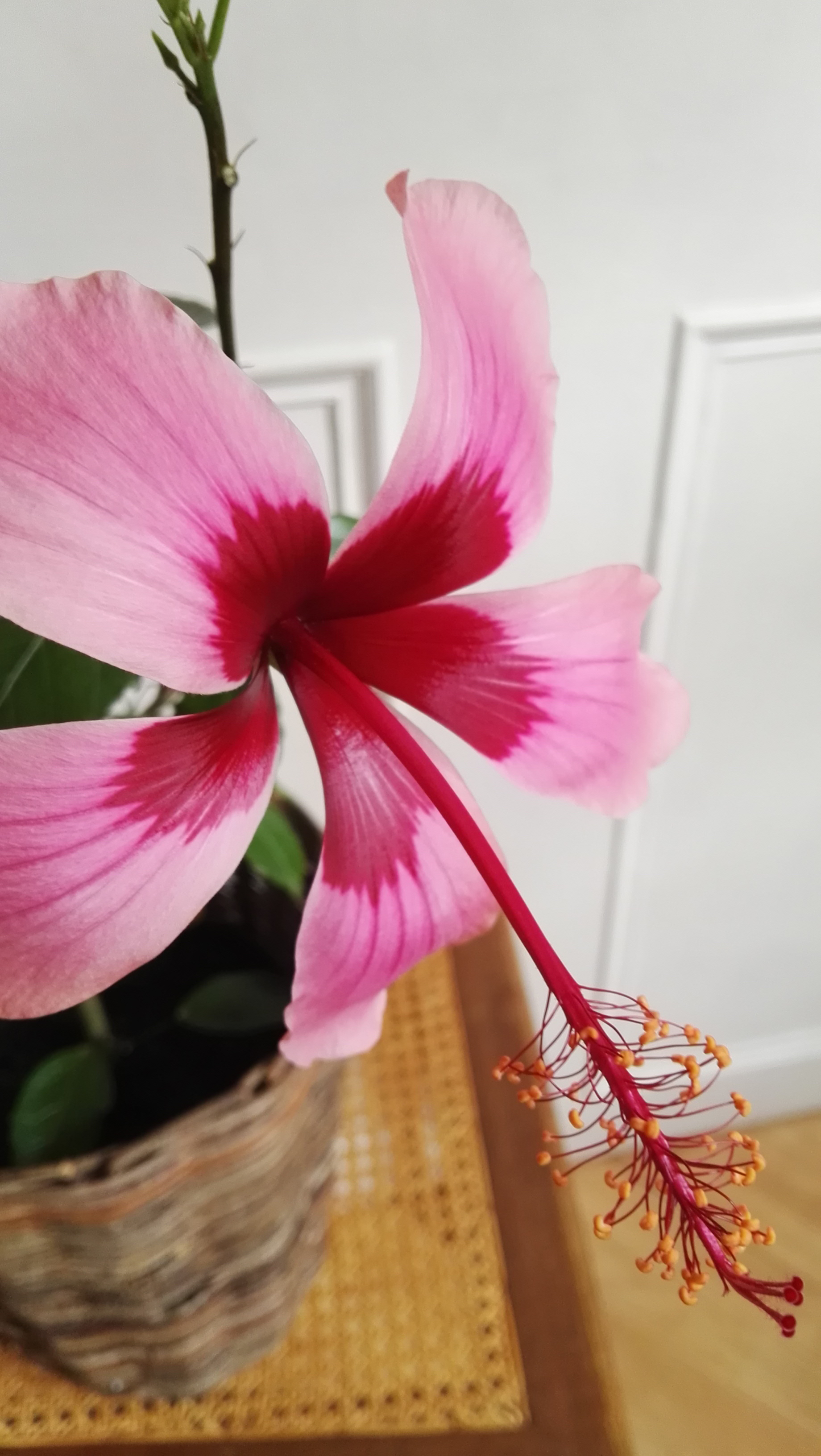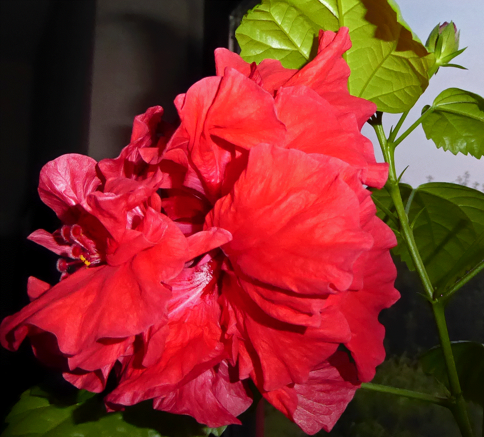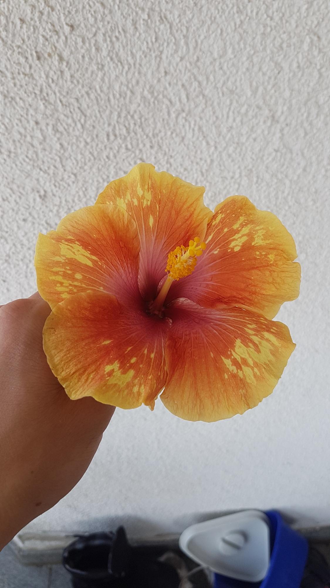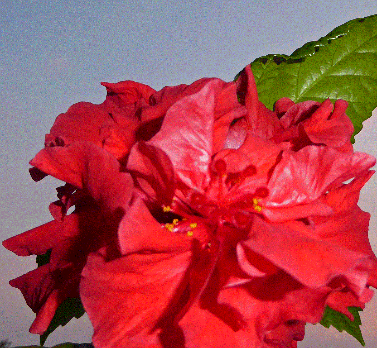Mein gefüllter roter Hibi hat übrigens auch mehr als einen Stempel mit Staubblättern, meist hat er so zwei bis drei davon... Allerdings ist der weibliche Til, also die runden, pinselartigen Stempel an der Spitze meist nicht vorhanden.