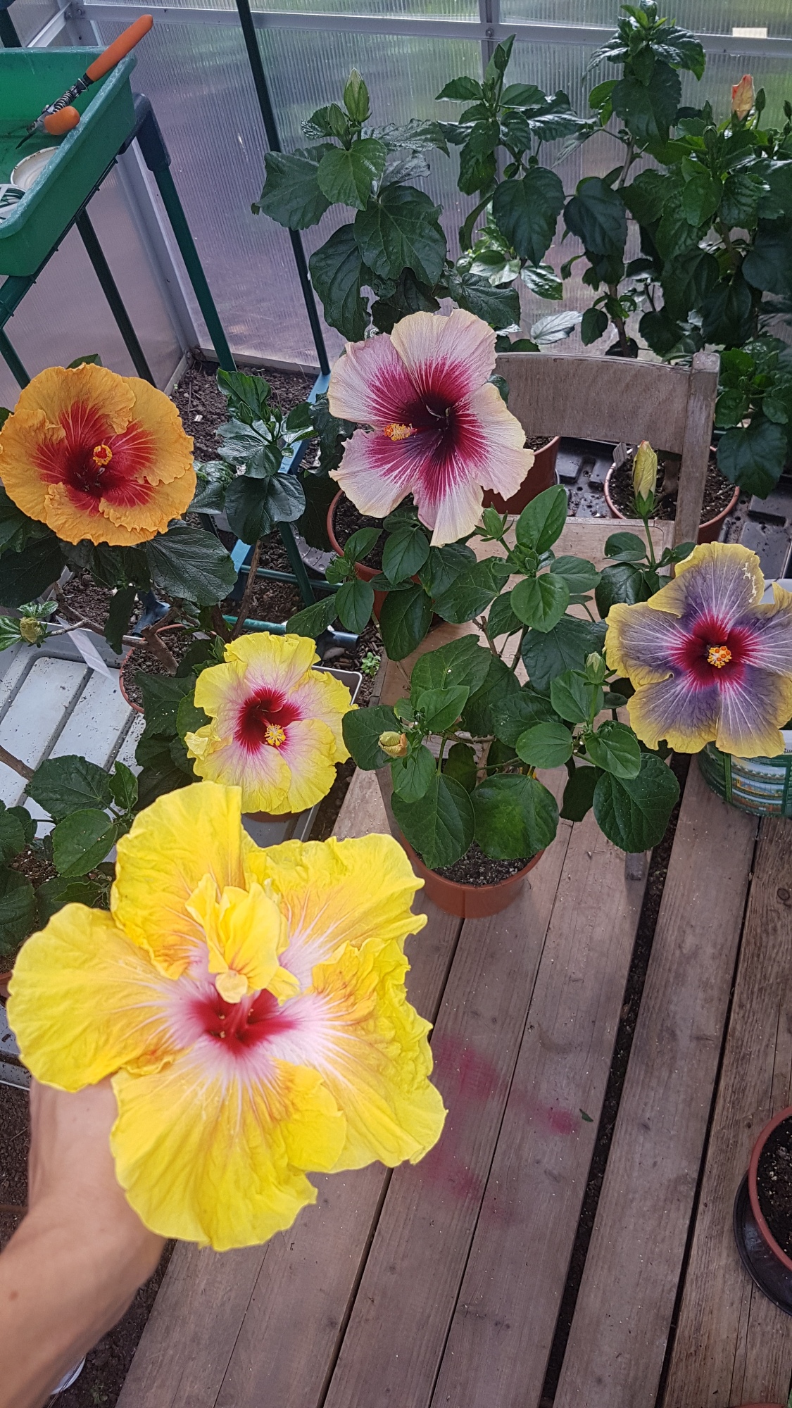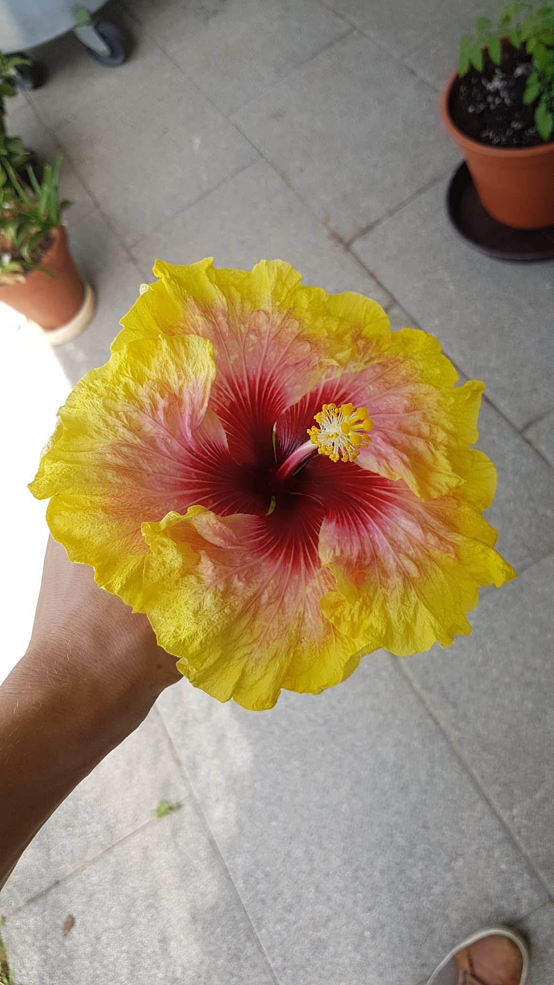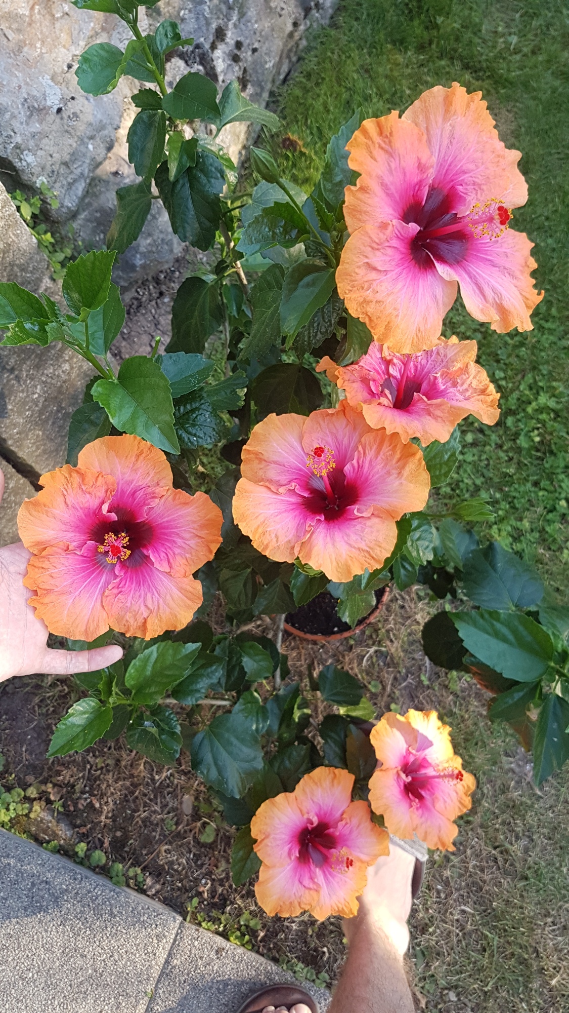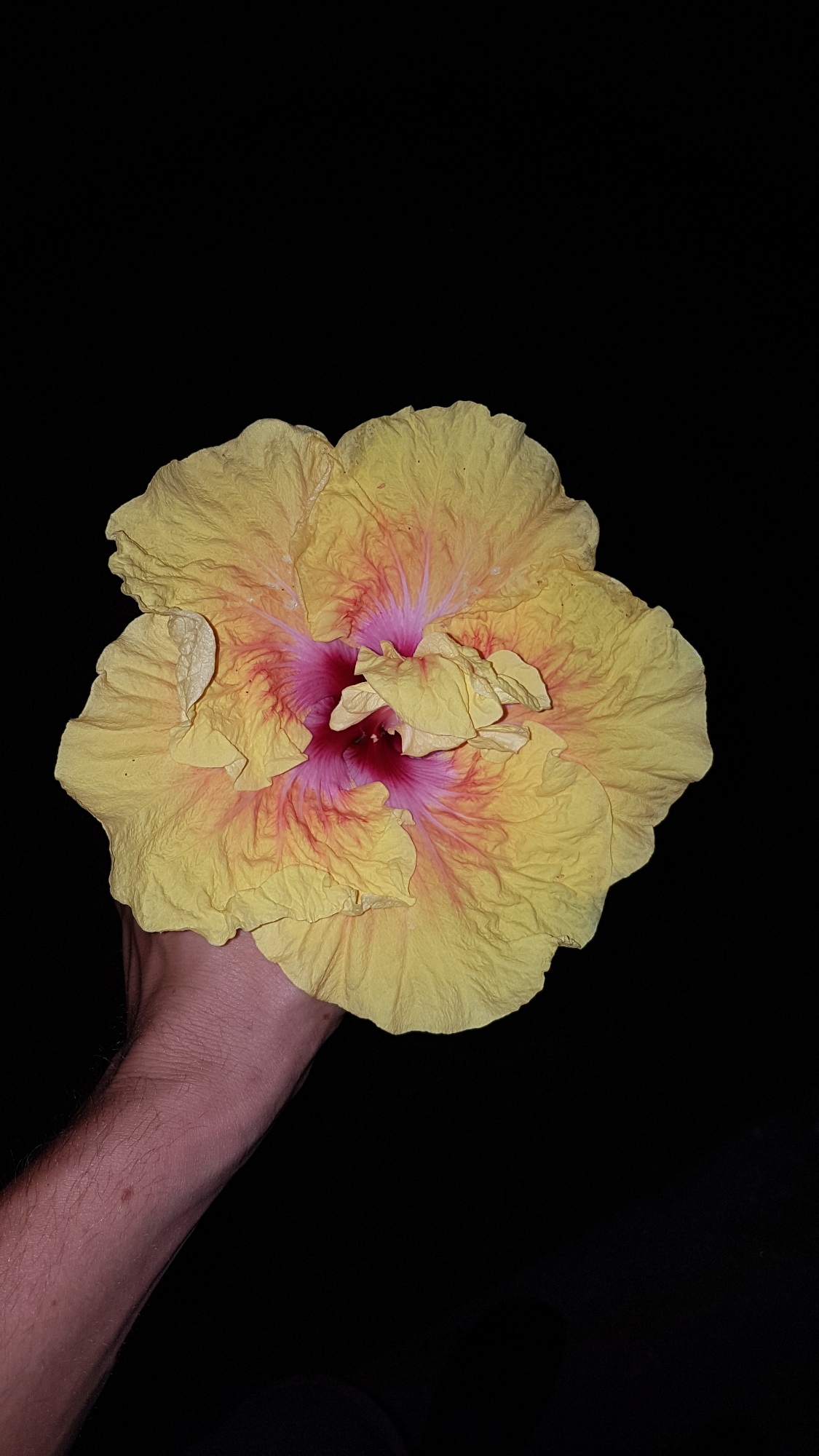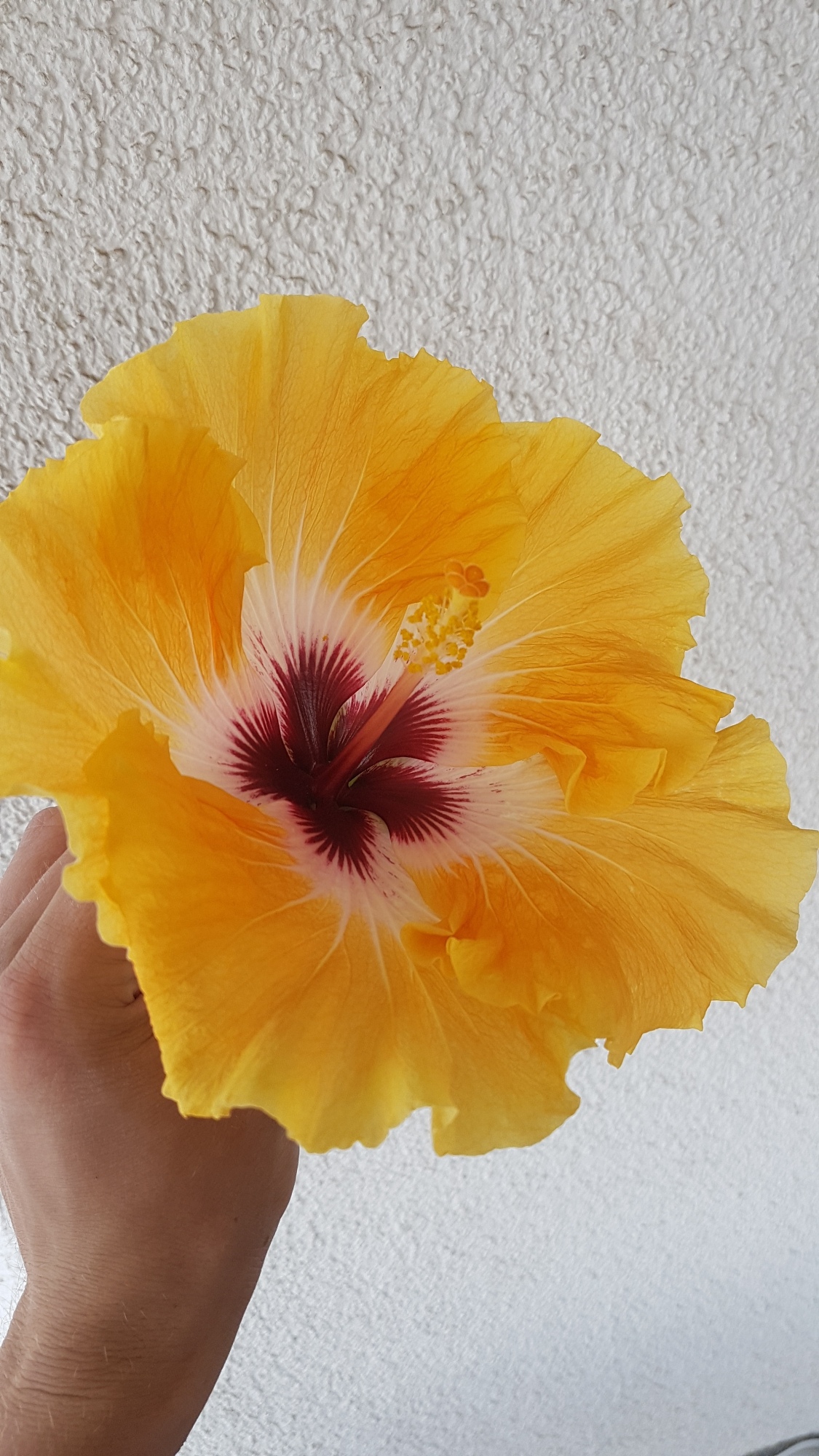 Mein gefüllter roter Hibi hat übrigens auch mehr als einen Stempel mit Staubblättern, meist hat er so zwei bis drei davon... Allerdings ist der weibliche Til, also die runden, pinselartigen Stempel an der Spitze meist nicht vorhanden.