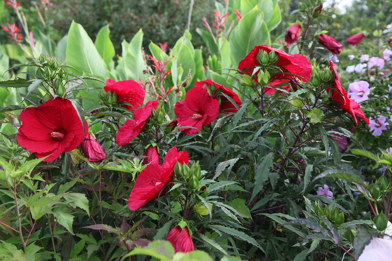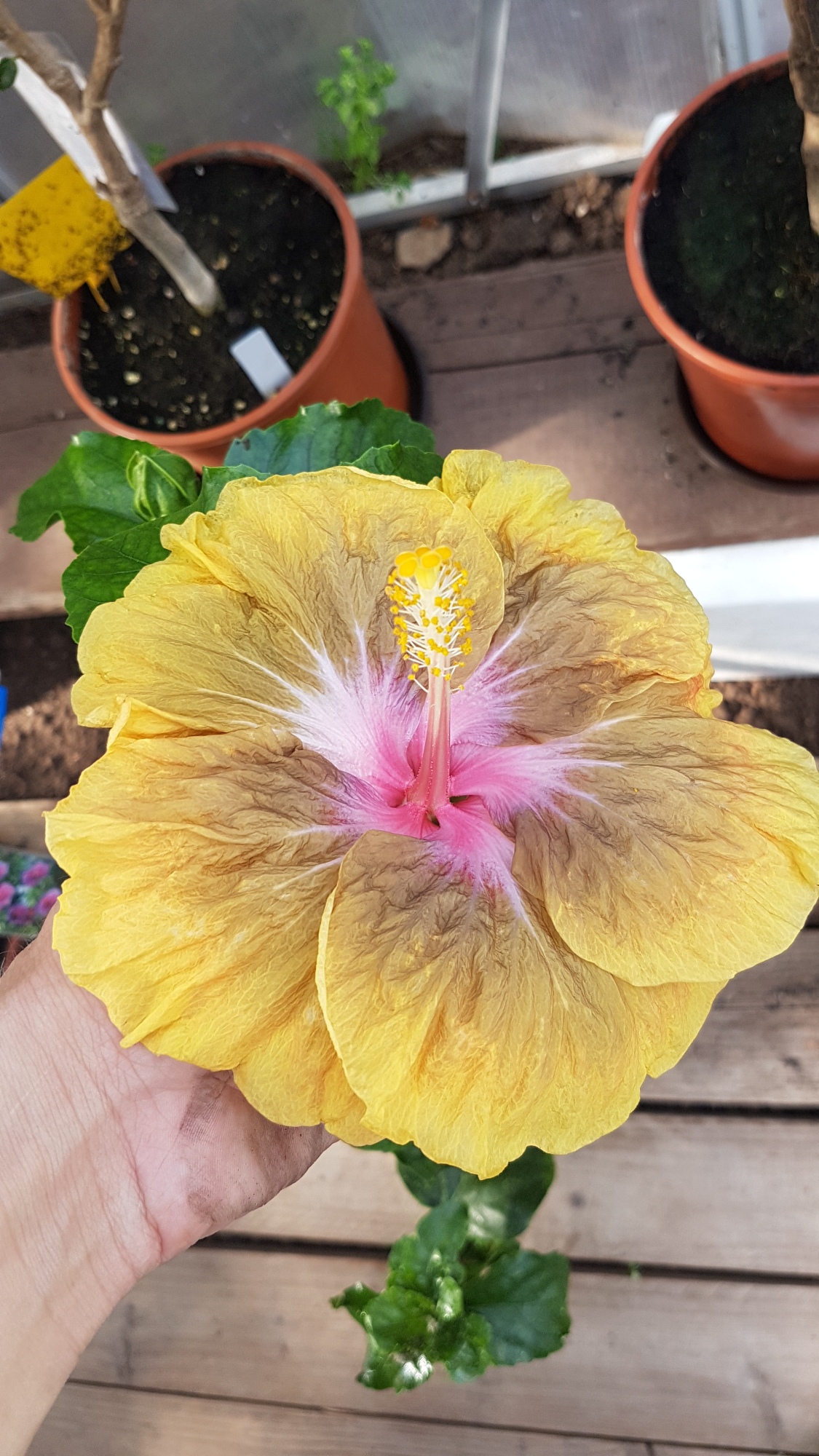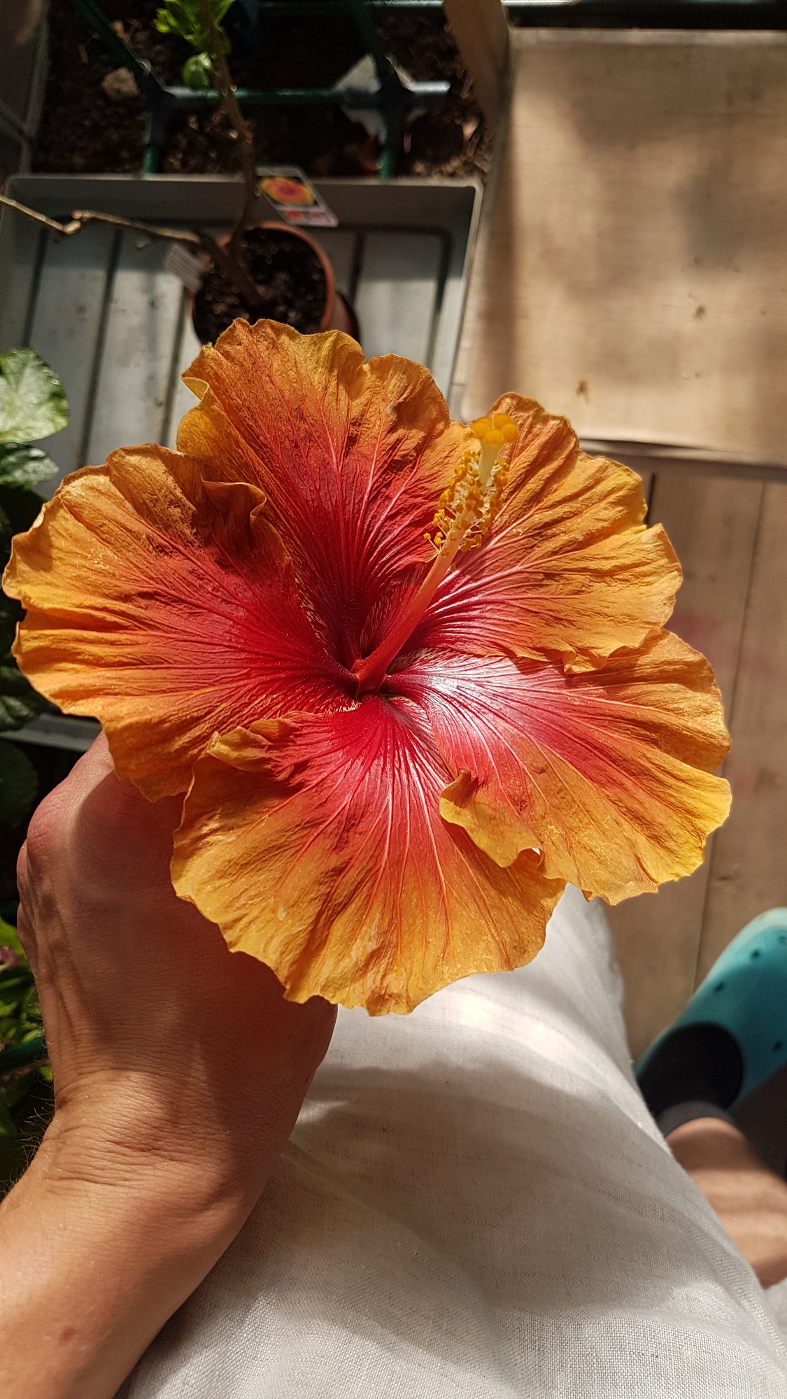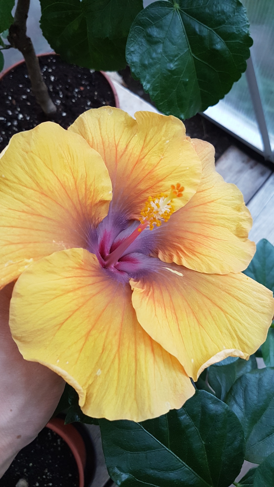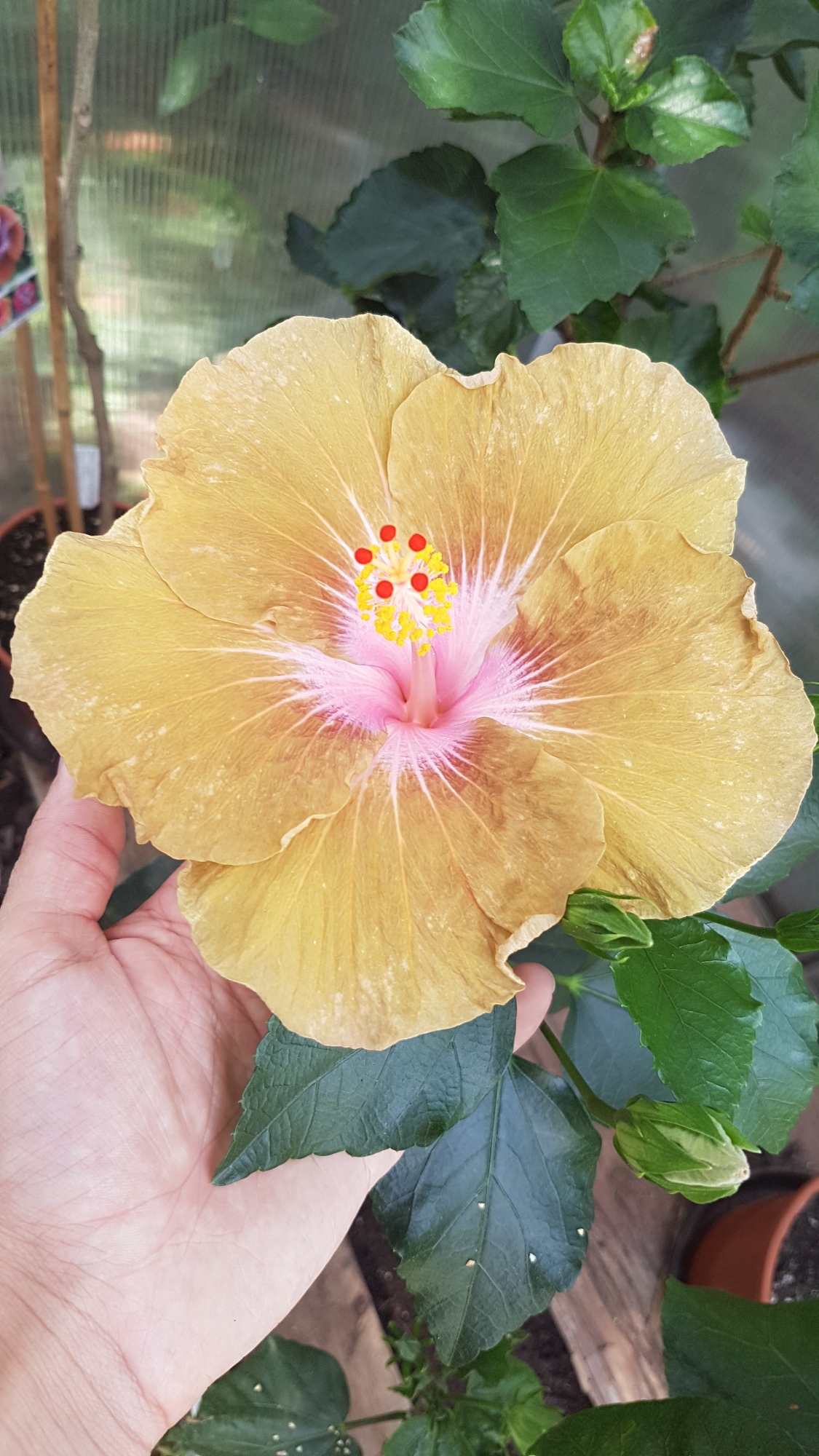 Mein gefüllter roter Hibi hat übrigens auch mehr als einen Stempel mit Staubblättern, meist hat er so zwei bis drei davon... Allerdings ist der weibliche Til, also die runden, pinselartigen Stempel an der Spitze meist nicht vorhanden.