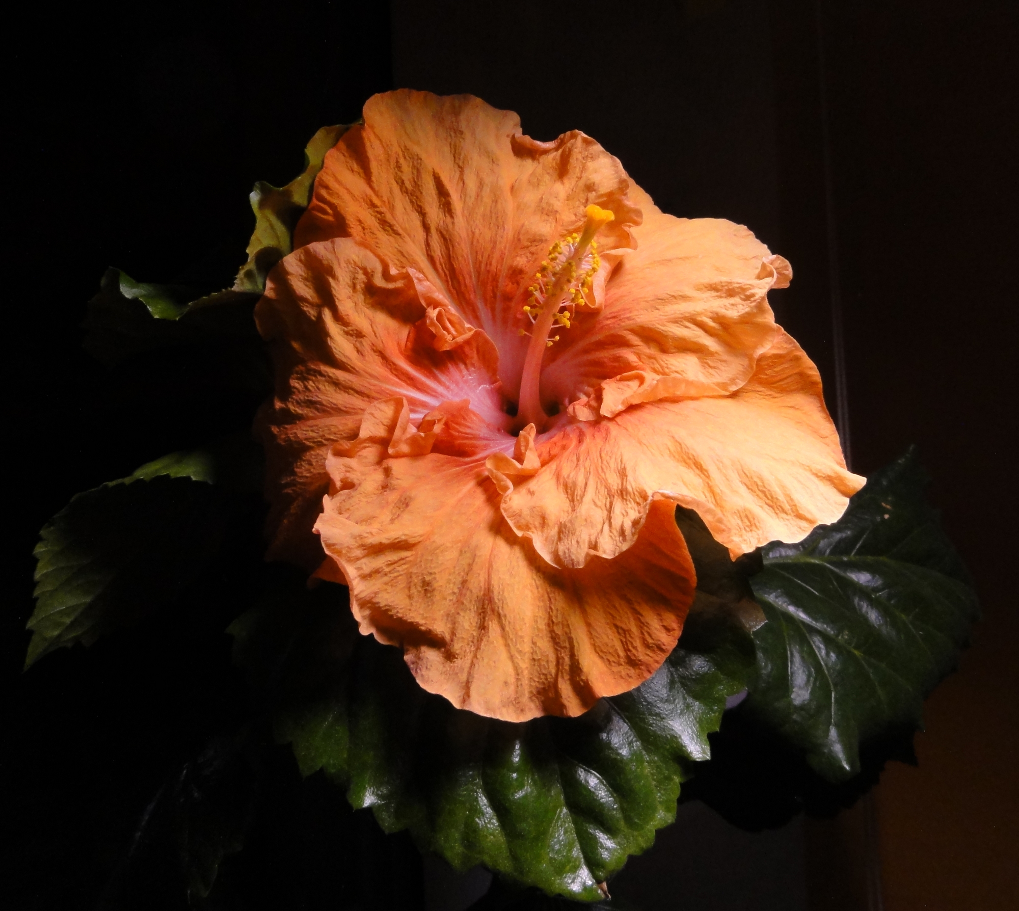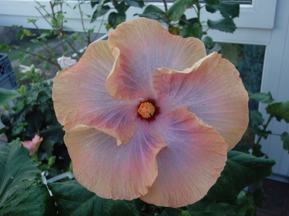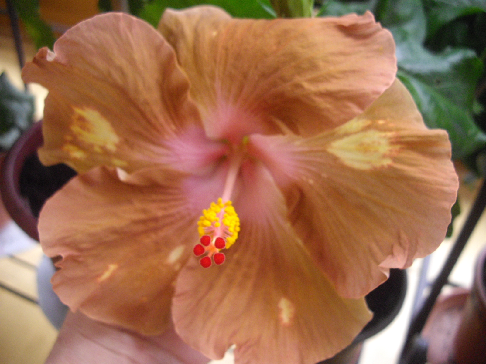 Die Blüte ist leider ziemlich farblos im Vergleich zu der ersten, die leicht geöffnet abgefallen ist - die war noch draußen gewachsen und hatte viel mehr Pink und Rot in der Mitte, hat mich bisschen an Cosmic Dancer erinnert und gefiel mir super, liebe diese Farben. Daher verspreche ich mir für nächsten Sommer mehr von dem Sämling, auch wenn diese Blüte sehr orange-lastig, fast einfarbig ist. Auf den Fotos, vor allem der Nahaufnahme, wirkt die Farbe blasser, als sie ist, war auch erst im Dunkeln zuhause, daher die unglücklichen Lichtverhältnisse.