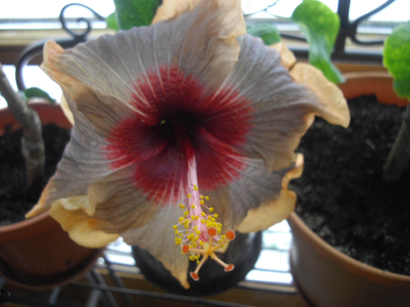 Ich mag ja beim Hibiskus auch mehr das Natürliche, Ursprüngliche, aber die gefüllten gefallen mir trotzdem sehr gut. Ich hatte ja auch mal einen apricotfarbenen, der es leider nicht lang machte. Der blühte sowas von üppig, auf einen Schlag 15 Blüten und um die 10 hatte er den ganzen Sommer über. Ich hatte davon auch hier Bilder gepostet, muss ich mal suchen.