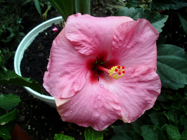Hier mal ein Bild meines bunten aber vorallen Hibiskus-Balkons und Cloud Nine die gerade blüht.