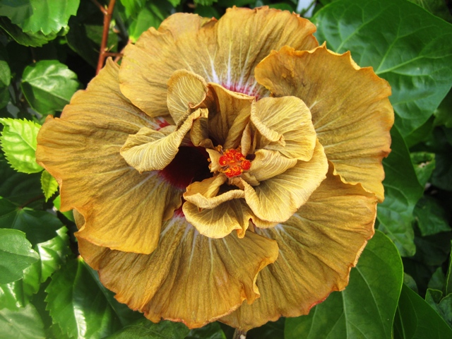Also, ich gebe euch recht, die ungefüllten Blüten finde ich auch schöner, sie sind irgendwie... kunstvoller in ihrer ... extravaganten Schlichtheit... *nach Worten fisch und keine find* - naja, also diese puscheligen Blüten sind zwar auch schön, meine gelben hier gefallen mir z.B. sehr gut, aber da kommt dieses filigrane, fast schon künstliche und zu perfekte des ungefüllten HIbis nicht so stark zur Geltung, und auch nicht diese wunderschönen Musterungen und Farbverläufe der Blätter.