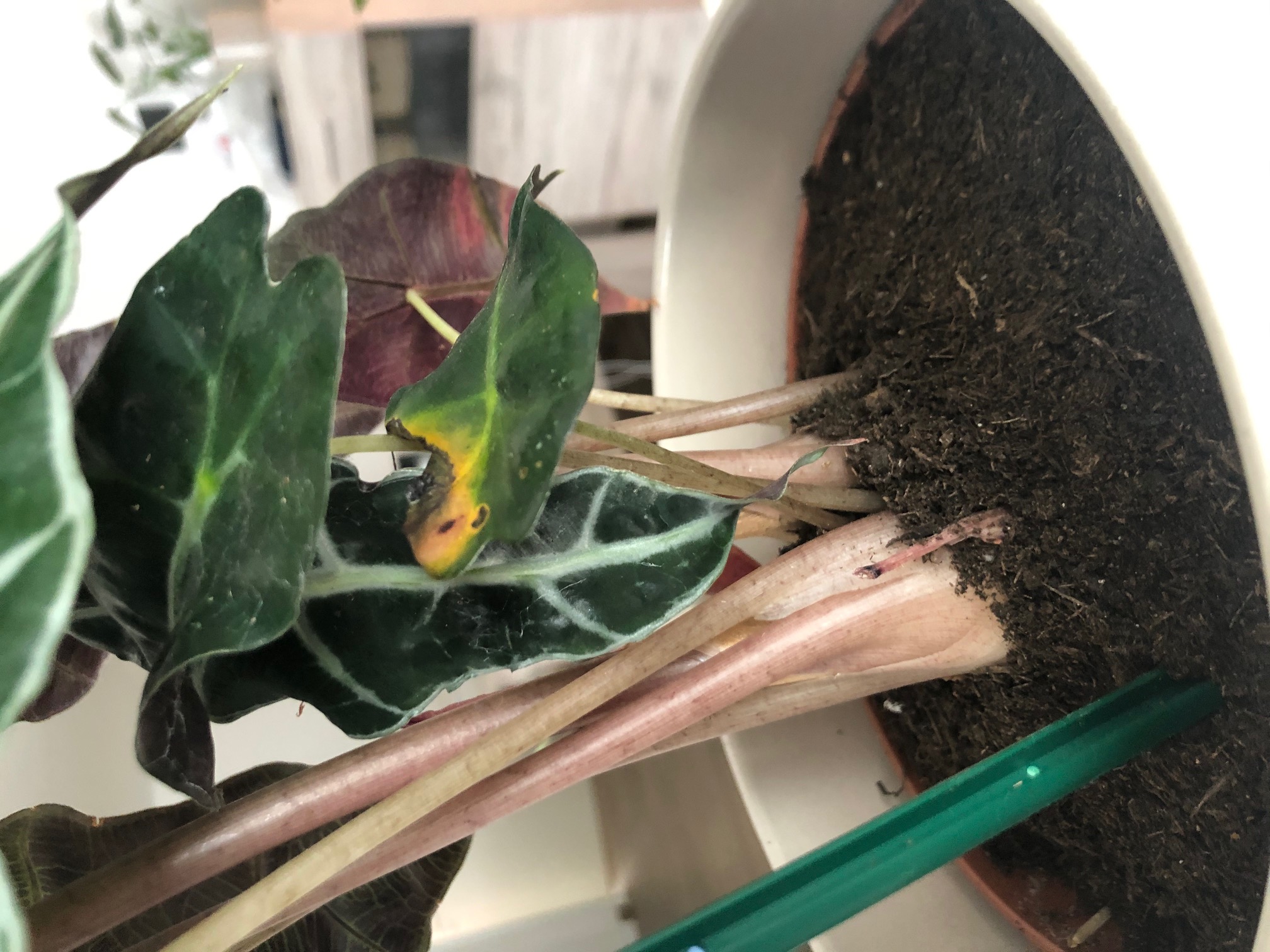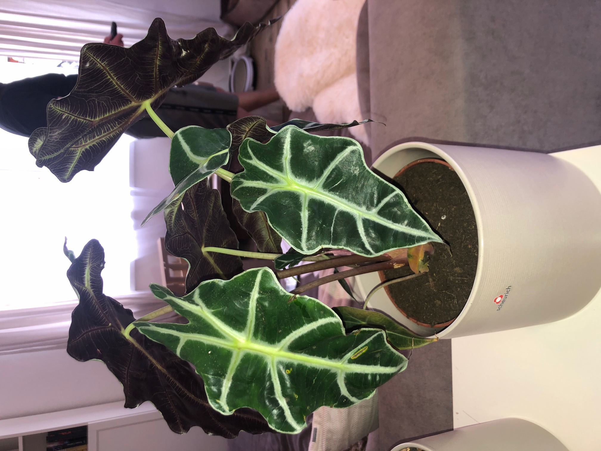 Ich habe diese zwei Alocasia sanderiana/polly/Pfeilblatt vor einer Woche gekauft. Eine davon wollte ich meiner Mama zum Geburtstag schenken, weil ich sie so schön finde.