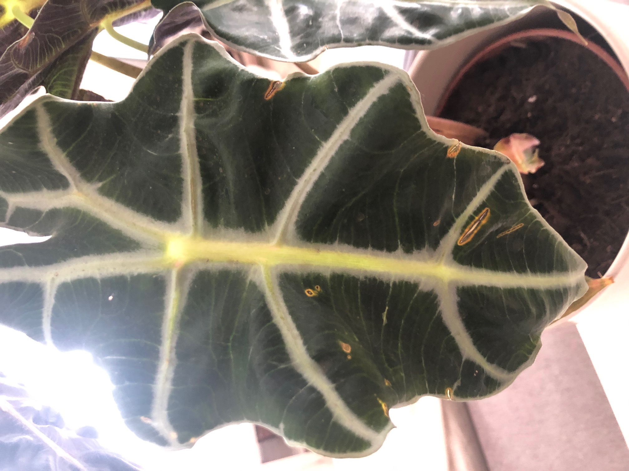 Hilfe: Alocasia sanderiana/polly!braune/gelbe Flecken, Risse