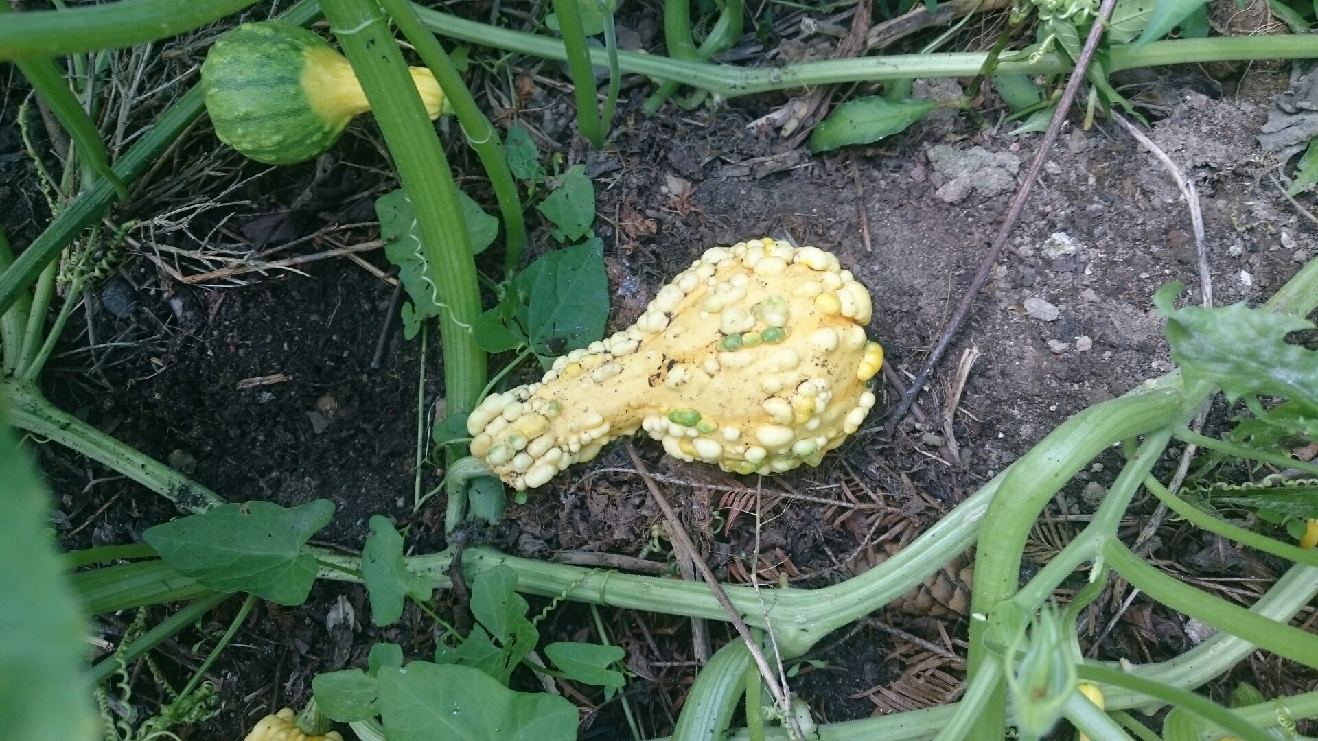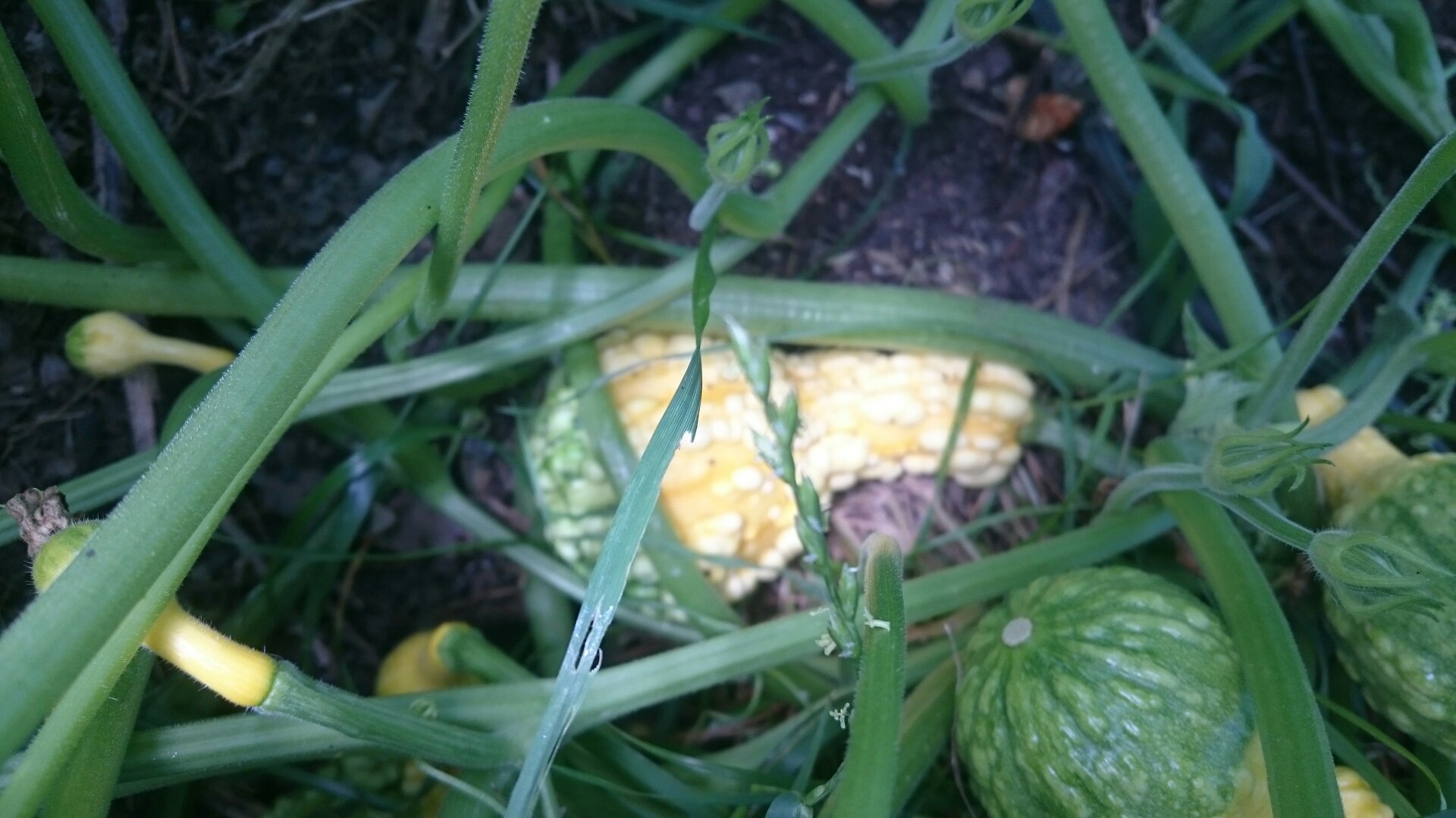 Nachdem die Pflanze schon verdört war, fing sie nun doch noch zu wachsen an. Jetzt weiß ich aber nicht mehr ob ich hier Zierkürbis oder Speisekürbisse angepflanzt habe.