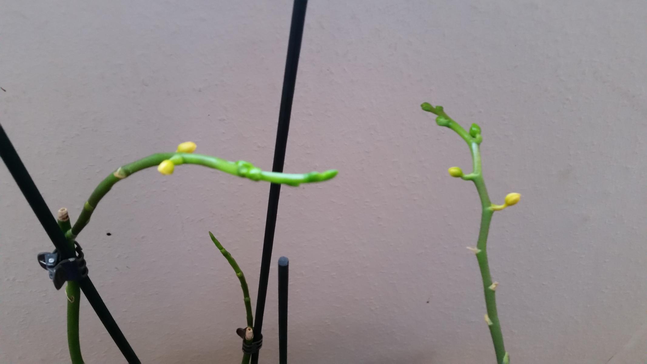 Sie hatte nach dem Kauf noch lange die Blüten gehabt und nun hat sie auch sofort neue Stiele gebildet aber die Knospen werden halt gelb...immer erst die unteren, denn die ersten unten auf zwei Seiten sind schon abgefallen.