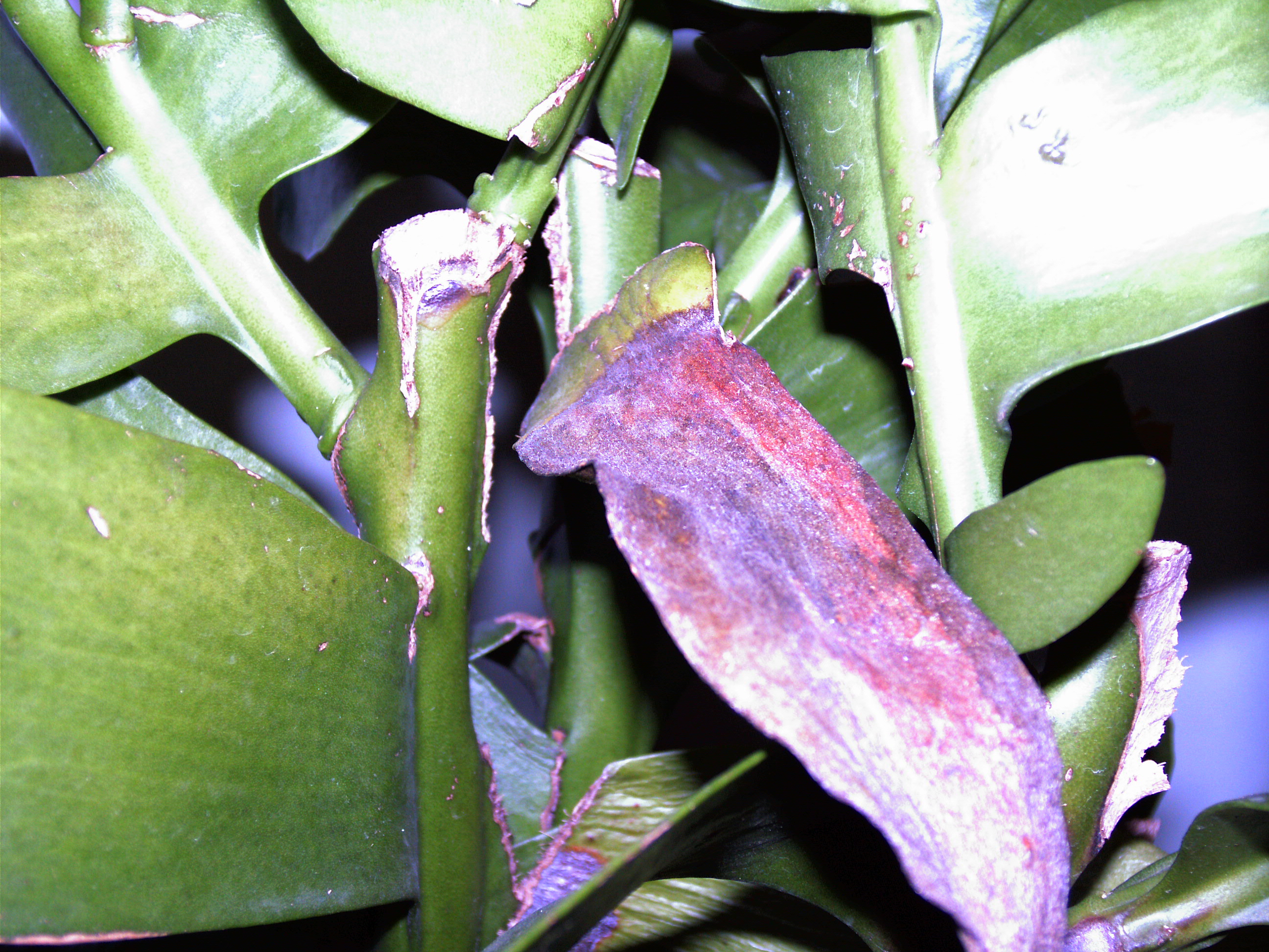 Die betroffenen Stellen sind nicht weich aber brösseln auch nicht bei berührung ab (vertrocknet) Tierchen konnte ich auch keine feststellen.
