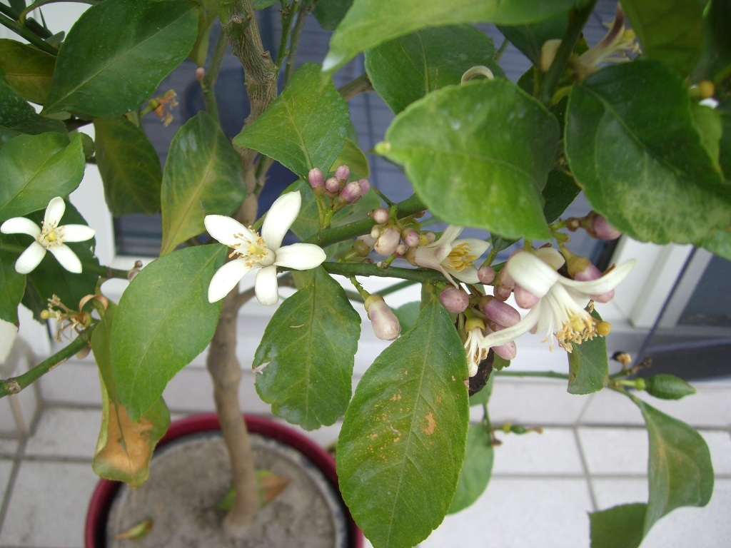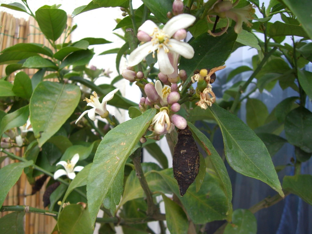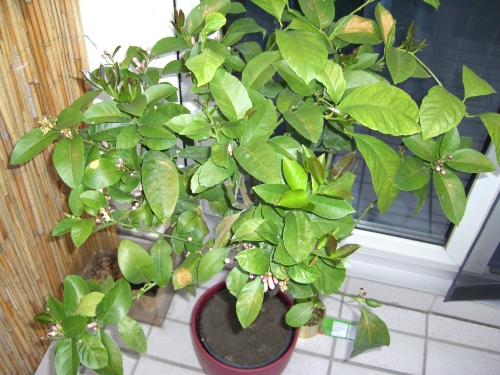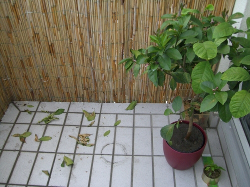 In letzter Zeit wurden viele kleine Zitronen langsam schwarz. dafür sind aber allerhand neue gekommen, die jetzt auch noch ziemlich fest sitzen und schön weiterwachsen.