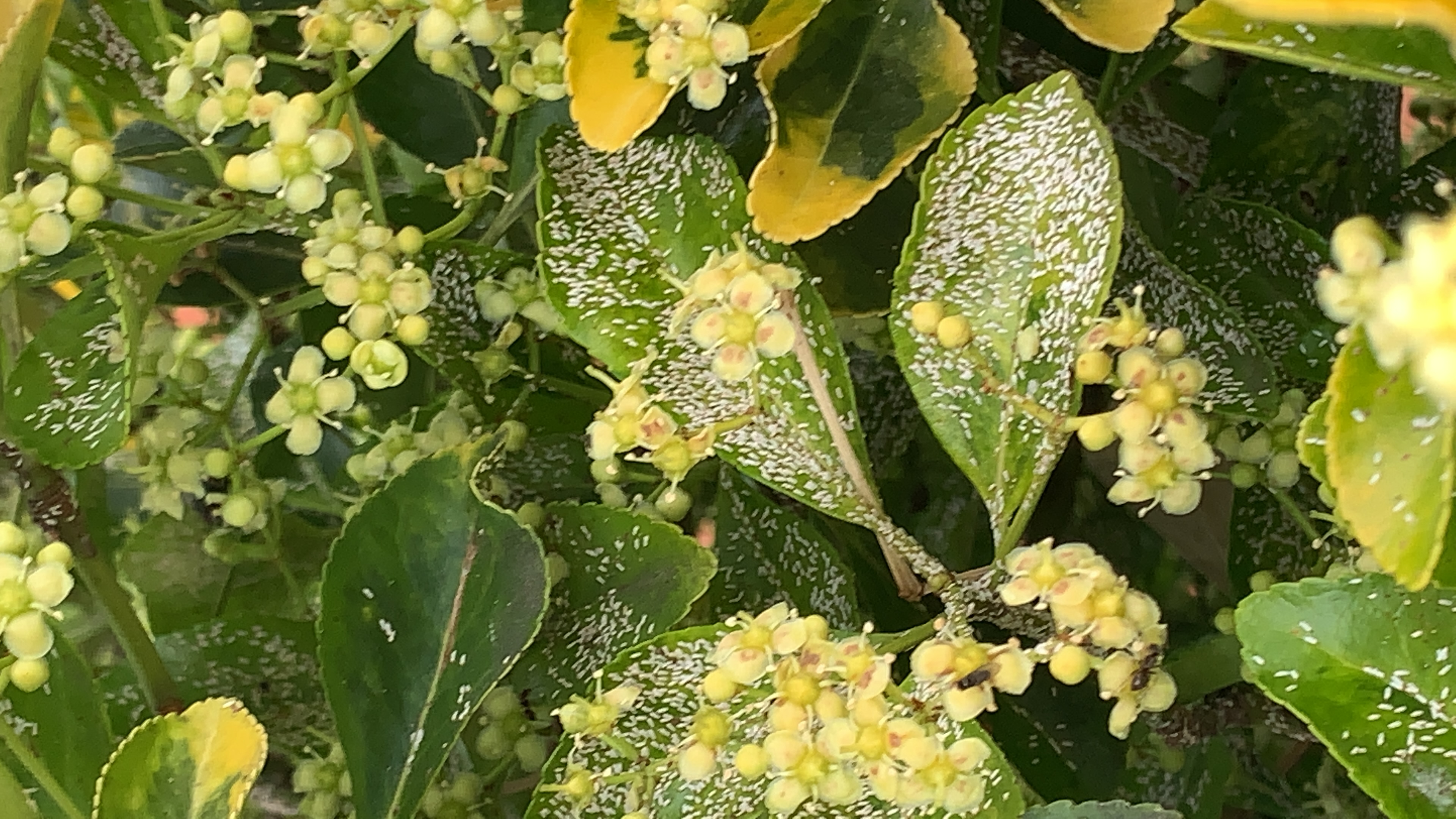 Mein Baum hier lebt. Nur leider nicht als Pflanze sondern er ist voller fliegen und Wespen. Diese scheinen von diesem weißen Belag angelockt zu werden. Das ganze ist quasi über Nacht passiert. Ich habe den Baum vor 1 Woche bereits mit celaflor behandelt aber wie es scheint erfolglos. Hat jemand eine Ahnung was das ist? Der Befalls ist sehr massiv. Ich habe auch Angst um meine anderen Pflanzen.