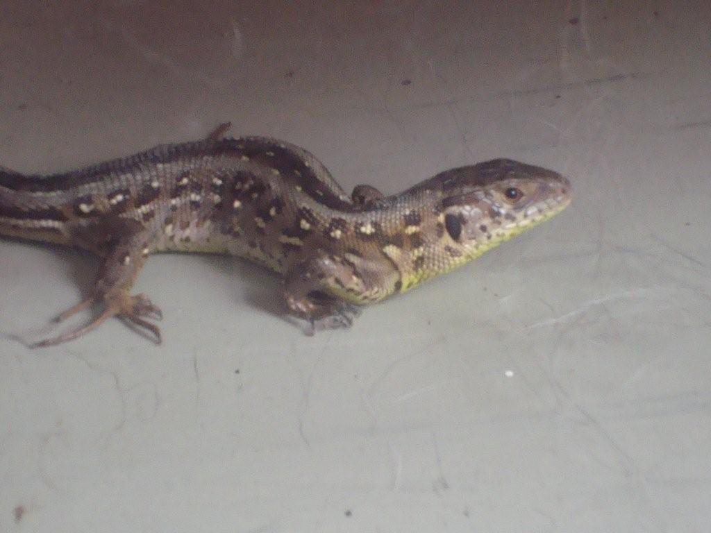bin heute total erschrocken, als ich neben meinem Schreibtisch im Schlafzimmer eine Eidechse ( http://de.wikipedia.org/wiki/Datei:ZootocaVivipara.jpg ) entdeckte. Sie blieb ganz ruhig liegen, obwohl ich auf ca. 20 cm an sie herankam. Daß es nachts hin und wieder geraschelt hat, hat mich nicht weiter beunruhigt, weil ich dachte, es könnte meine Hausmaus, die auf der Terrasse wohnt sein.