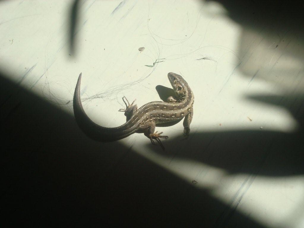 bin heute total erschrocken, als ich neben meinem Schreibtisch im Schlafzimmer eine Eidechse ( http://de.wikipedia.org/wiki/Datei:ZootocaVivipara.jpg ) entdeckte. Sie blieb ganz ruhig liegen, obwohl ich auf ca. 20 cm an sie herankam. Daß es nachts hin und wieder geraschelt hat, hat mich nicht weiter beunruhigt, weil ich dachte, es könnte meine Hausmaus, die auf der Terrasse wohnt sein.