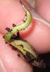 Meine Frage. Was ist das, was aus dem Samen kommt, dieser grüne Zipfel? --> Ist es die Wurzel oder ....was, das oben raus wächst -> damit ich es wieder "richtig rum" wieder setze??