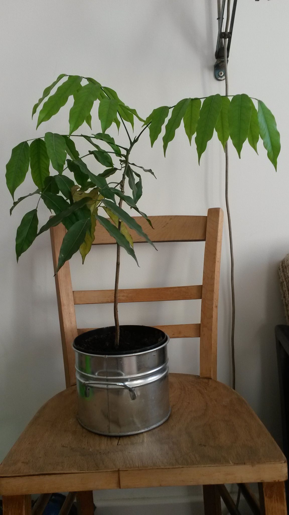 Zuerst zu der australischen Kastanie, nachdem ich sie in den letzten Jahren tatsächlich nicht gut behandelt habe, schien es ihr seit dem Umzug in eine hellere Wohnung Anfang Oktober sichtlich besser zu gehen, sie hat oben zwei stattliche neue Triebe bekommen, ein weiterer scheint gerade im Anmarsch (und das obwohl sie ca. 2m vom Südfenster entfernt steht). Da sie bis dahin in ihrem Übertopf ohne Abzugsloch stand habe ich ihr einen neuen Innentopf mit Loch und etwas neue Erde verpasst, gegossen weiterhin normal, also Erde nur leicht feucht und keine Staunässe.