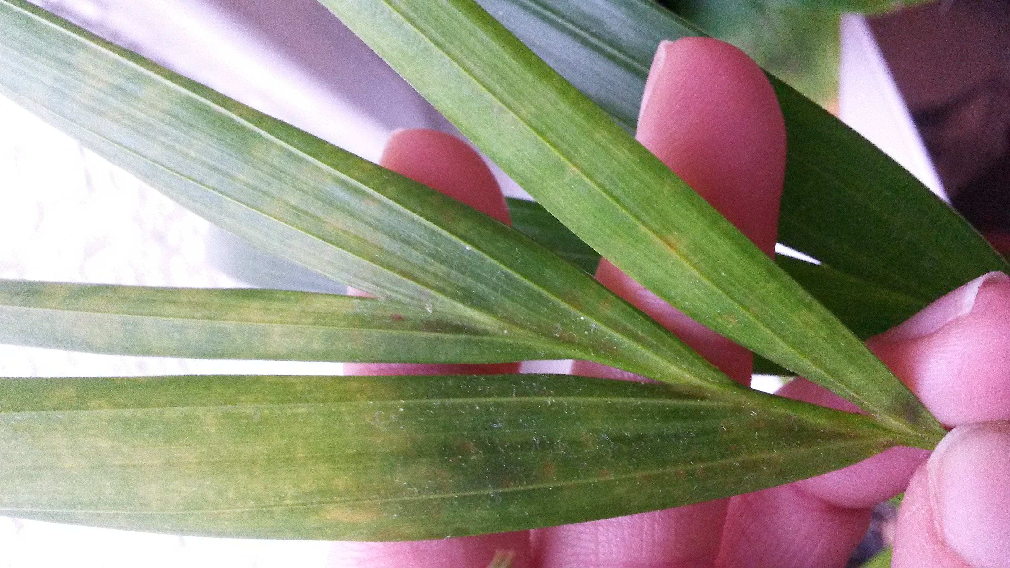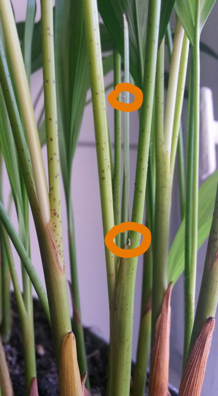 Dann die zweite Pflanze, bin bisher immer davon ausgegangen dass es eine kleine Kentia Palme ist, mir ist allerdings erst vor kurzem aufgefallen dass Kentias ja immer mehrere Blätter pro Wedel haben meine hat allerdings immer genau zwei Blätter an einem Stängel... also zuerst mal, was habe ich hier eigentlich stehen?