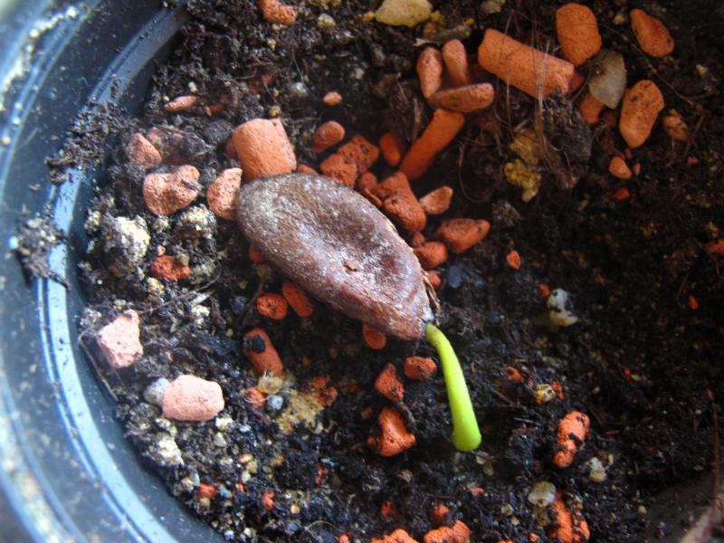 Ich hatte den Kern von der Kaki quer in die Erde gelegt, da ich nicht erkennen konnte, wo der Keim ´rauskommt.
