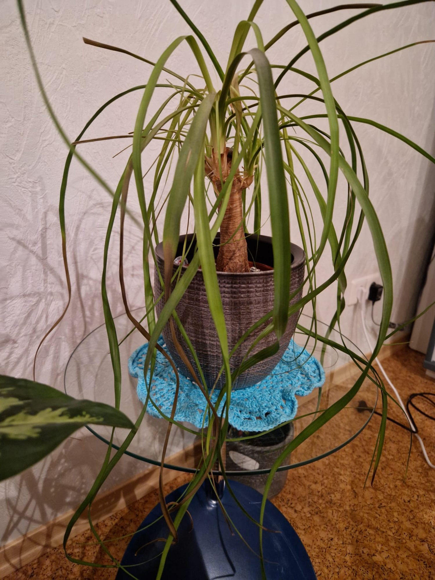 Umgetopft habe ich den Elefantenfuß seit ich ihn besitze noch nie. Wäre das eventuell nötig? Auch wegen dem weißen Zeug oben auf der Erde?
