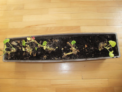Ich habe dieses Jahr zum ersten mal versucht, Geranien zu überwintern. Im Herbst habe ich nur die Blüten weggeschnitten. Bis jetzt waren sie in einem kalten, TOTAL dunklen Keller. Ich habe NIE gegossen, weil sie die Erde immer feucht angefühlt hat.