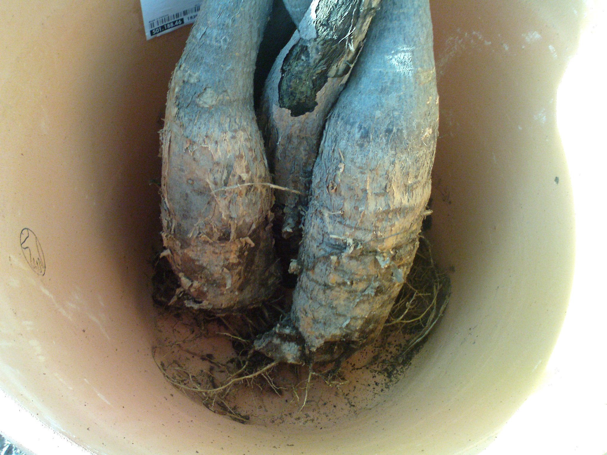 Nun dacht ich mir, lass ich erstmal die Stämme einen ganzen Tag ohne erde damit diese trocknen und werde morgen die pachira aquatica in neue erde setzen.