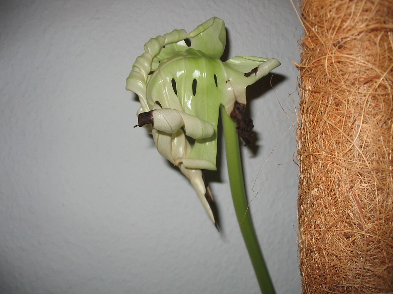 Bei unser großen Monstera (also der im Schlafzimmer) wird selbst das neue Blatt direkt braun. Ich habe mal Bilder zur Veranschaulichung eingestellt und bitte um Hilfe. Danke schon mal im voraus.