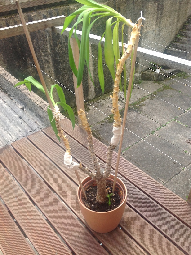 Habe seit ca. 25 Jahren meine Palme. Sie war immer sehr pflegeleicht und hat sich gut entwickelt. Seit ca. 6 Monaten sind die Stämme und teilweise auch die Blätter gelblich verfärbt. Außerdem sind die Stämme sehr brüchig und zum Teil schon angebrochen, weswegen ich sie mit einer Binde fixiert habe. Seit kurzem lässt die Pflanze auch die Blätter hängen (siehe Foto). Mich würde interessieren, ob ich noch irgendetwas tun kann, um die Palme zu retten, da sie relativ instabil ist. Habe sie heute auf unseren Balkon gestellt, sodass sie mehr Sonnenlicht bekommt?!