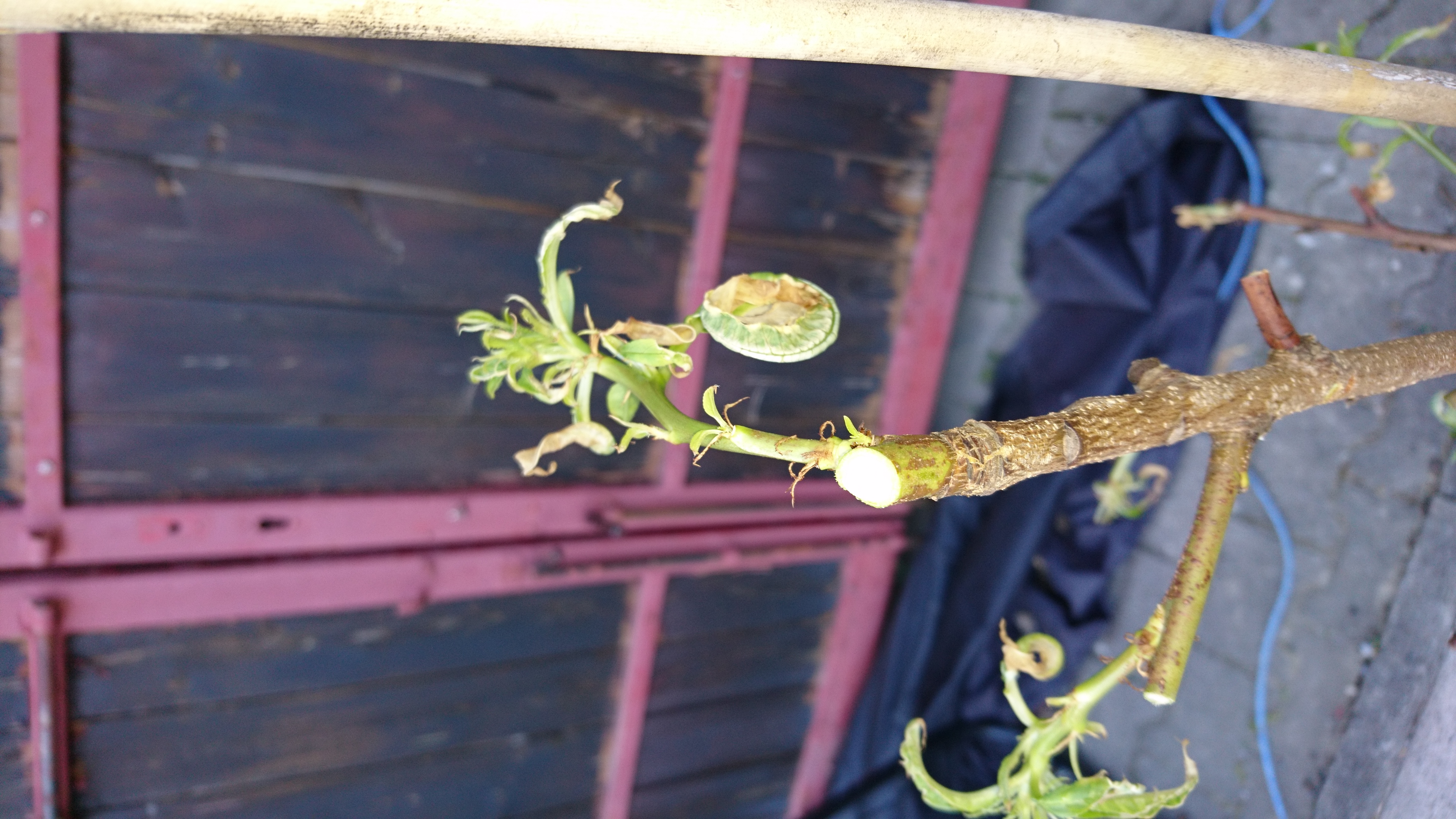 kleiner Nachtrag, habe sie jetzt seit meinem letzten Bericht draußen an der Hauswand neben meinen Brombeeren stehen, Hauptstamm und Nebentriebe geschnitten, hoffe das ist so richtig, ist mein erstes Mal beim Baumschnitt