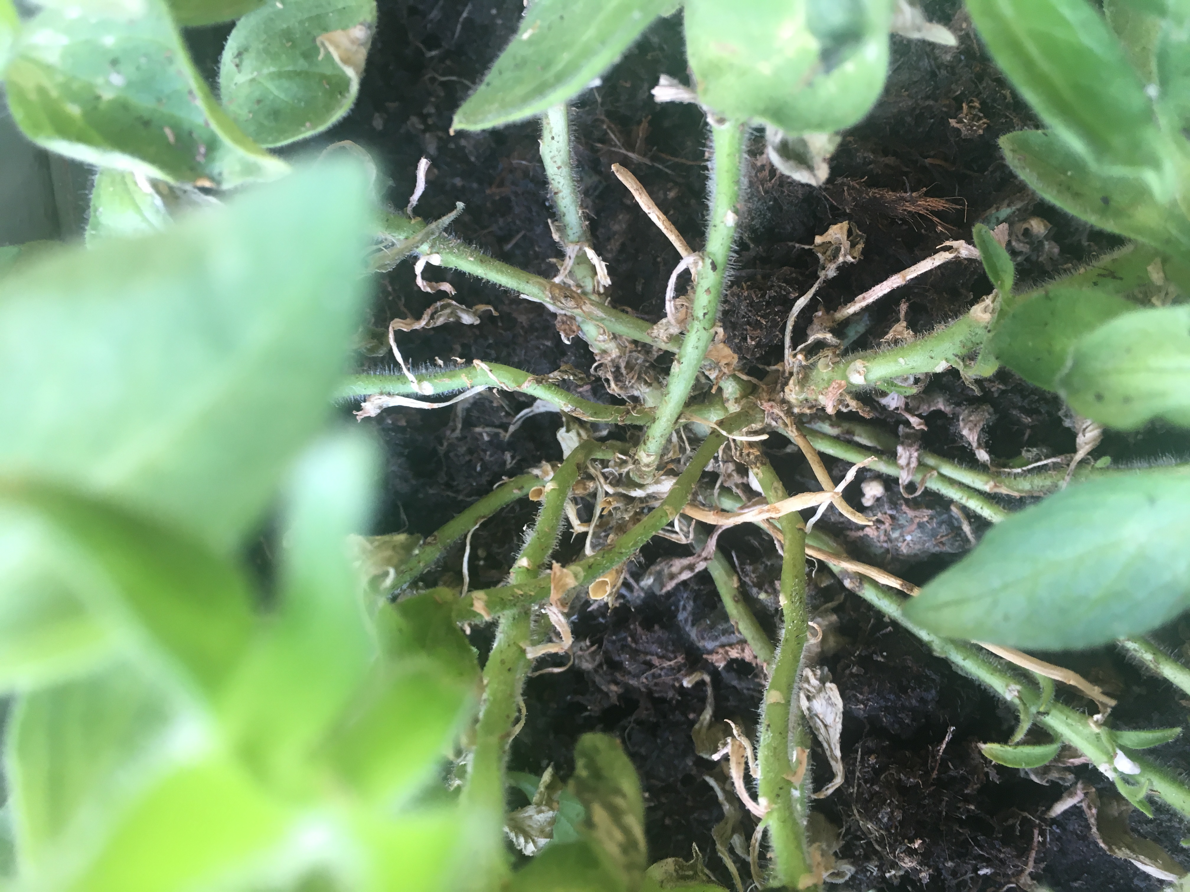 es sind keine mechanischen Schäden erkennbar - Somit ist kein Grund ersichtlich, warum Deine Petunien nicht mehr neu treiben und wieder blühen sollten.