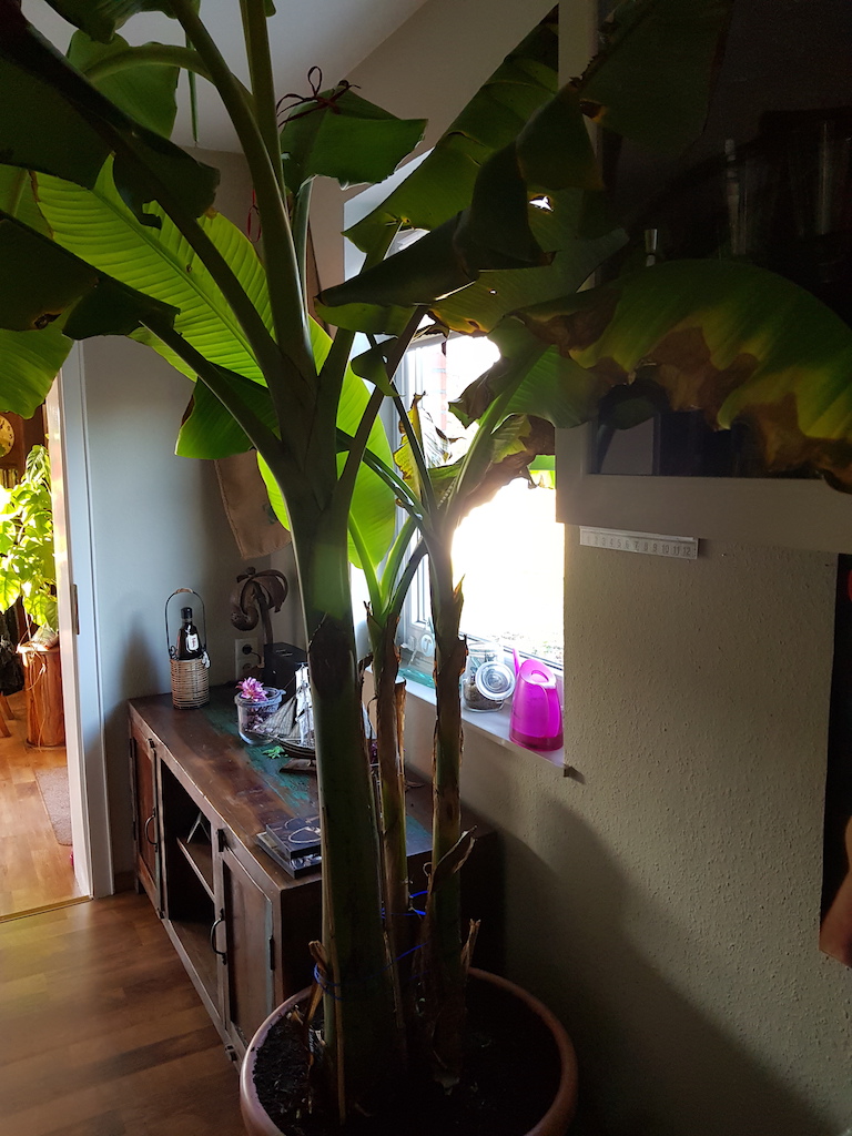ich hoffe sehr, dass mir hier jemand helfen kann.... Ich habe drei Banenenpflanzen in einem großen Topf, seit circa einem Jahr. DIe Pflanzen sind alle 2 Jahre alt, davor hatte ich sie einzeln in Töpfen, das fanden sie doof und haben sich überhaupt nicht entwickelt. Seit ich sie zusammen in einem Topf habe, wachsen sie wie doof und zwei Pflanzen haben auch Ableger. Eine der Pflanzen (die ohne Ableger) ist sehr kräftig und groß und macht überhaupt keine Probleme. Die anderen beiden, vor allem eine, kämpfen mit braunen Blättern. Teilweise haben die Blätter sogar schon braune Stellen, wenn sie noch eingerollt sind und gerade erst nachkommen.