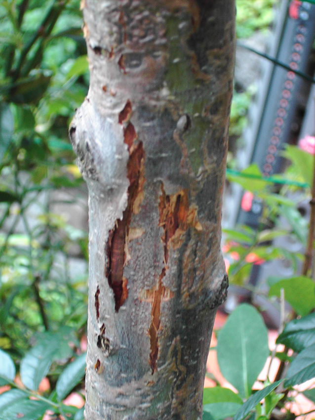 Im Frühjahr hab mir endlich einen Rotdorn in den Garten gepflanzt. Er hat schön geblüht und ich denke, er ist gut angewachsen. Seit einiger Zeit muss ich jedoch feststellen, dass die Rinde mitten am Stamm sich grau verfärbt und aufreisst. Siehe Bilder