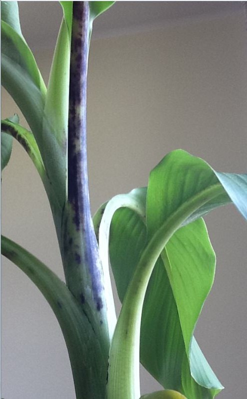 ich besitze seit ca. acht Monaten eine Schneebanane die super wächst und gedeiht, leider sind seit einigen Wochen 2 Blätter am Stiel Braun-Schwarz verfärbt.
