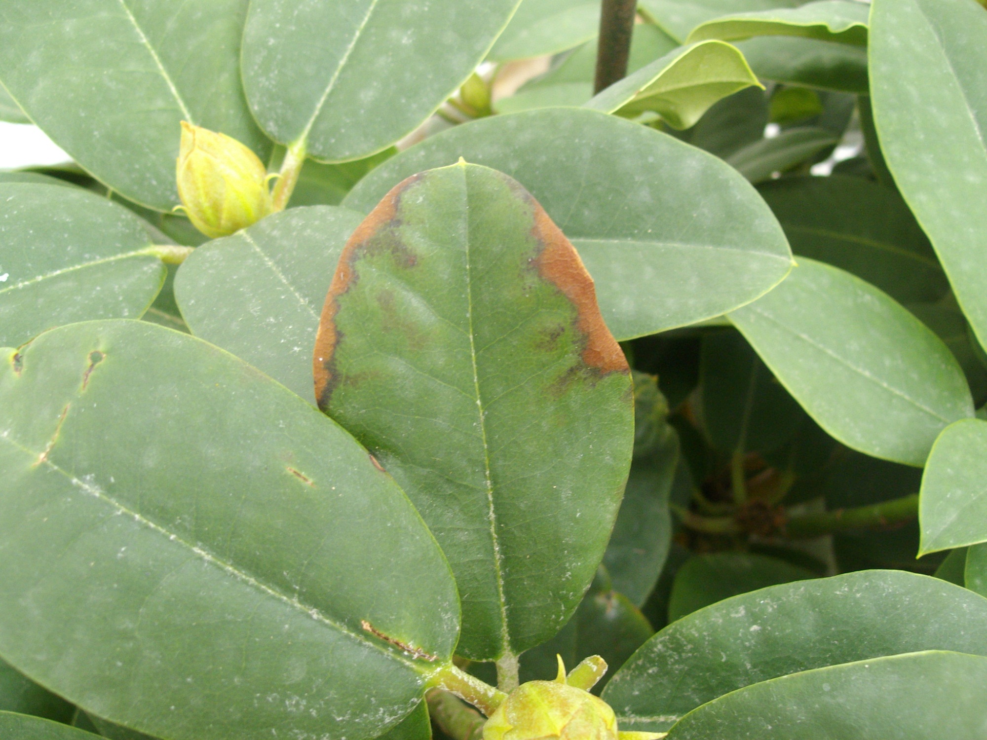 ich hoffe ihr könnt mir helfen,unser Rhododendron,den wir dieses Frühjahr kauften,ist krank.Er bekommt lauter braune Ränder an den Blättern und die Zweige sind gelblich -grün.
