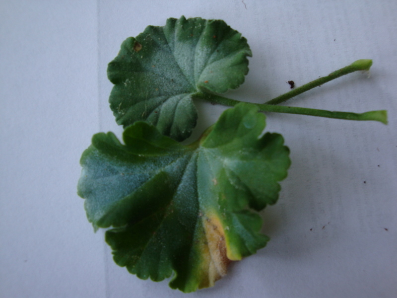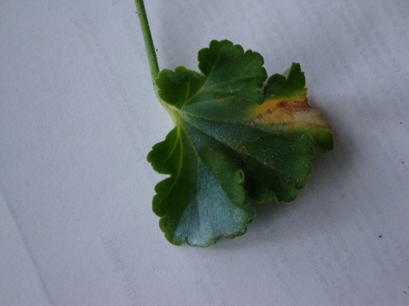 Heute habe ich bei meinen Geranien Blätter gefunden die aussehen als hätten sie blauen Schimmel drauf. Die Geranien sind in Kästen die an der an der Innenwand des Balkons hängen dort bekommen sie keinen Regen ab.