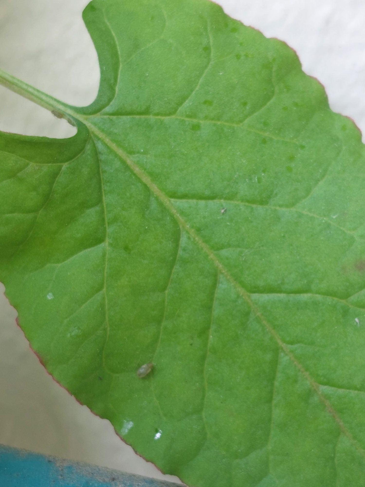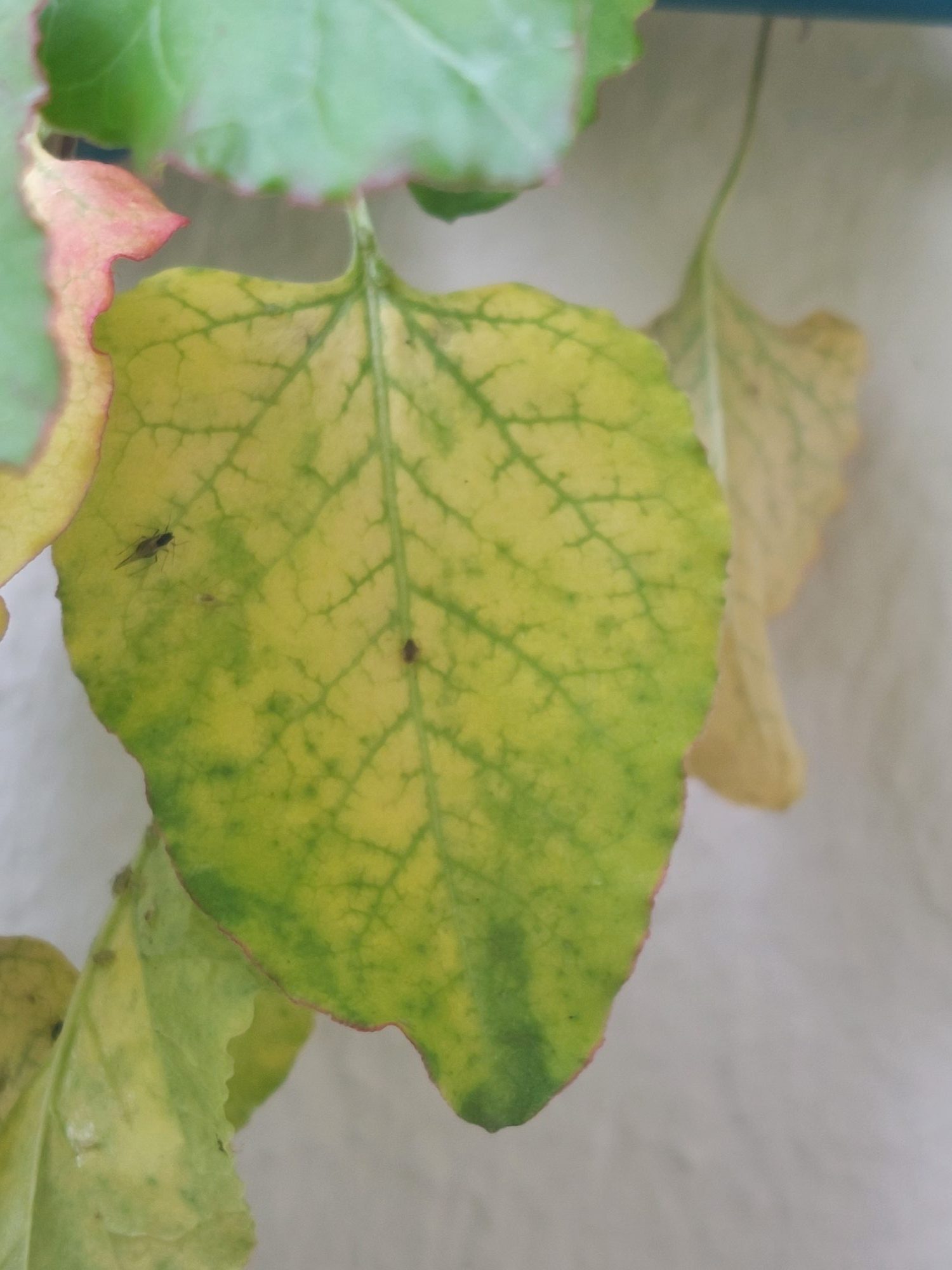 unser Knöterich hat seit einigen Wochen einen Befall. Zuerst dachte ich, es handelt sich um Blattläuse und habe die Blätter mit Wasser und Seife besprüht und Streichhölzer in die Erde gesteckt. Nun sehe ich aber zusätzlich kleine Fliegenartige Tierchen. Einige davon scheinen allerdings tot zu sein.