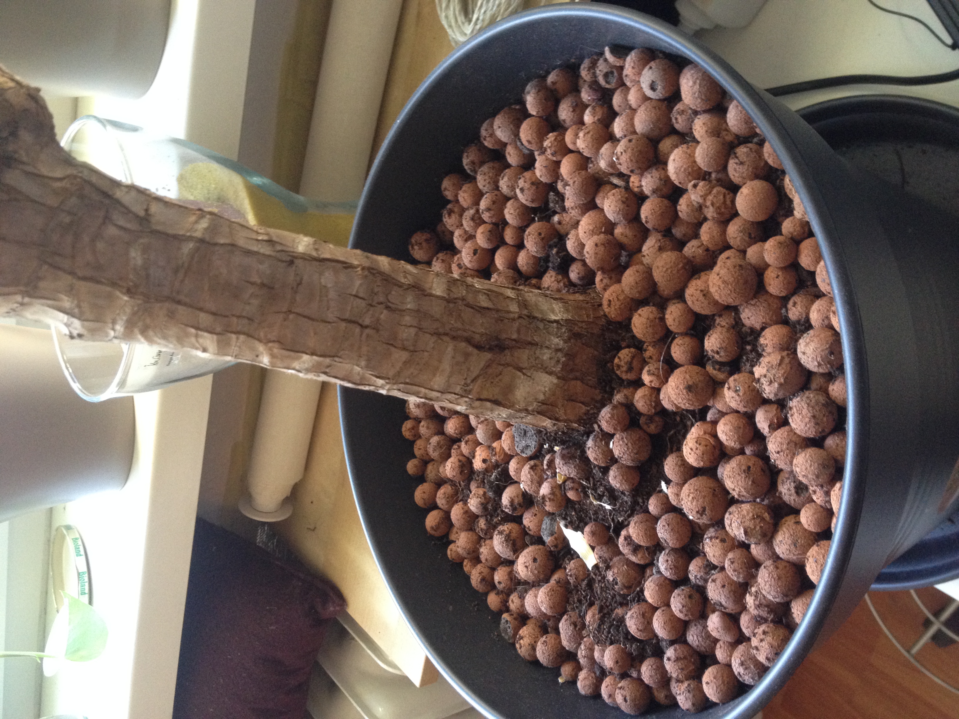 Jetzt ist sicher ein Jahr vergangen, diesen Winter hat sie bis jetzt nicht wieder die Hälfte der Blätter abgeworfen, weshalb ihr der Standort lichttechnisch wahrscheinlich besser gefällt. Allerdings hat sie irgendwie in dem Topf mit dem Granulat keinen Halt. Dadurch dass sie so hoch ist, kippt sie etwas (einmal hat meine Freundin das ganze Teil umgerissen, das gab eine Sauerei..). Irgendwie scheint sich der Wurzelballen nicht weiter im Topf auszubreiten?