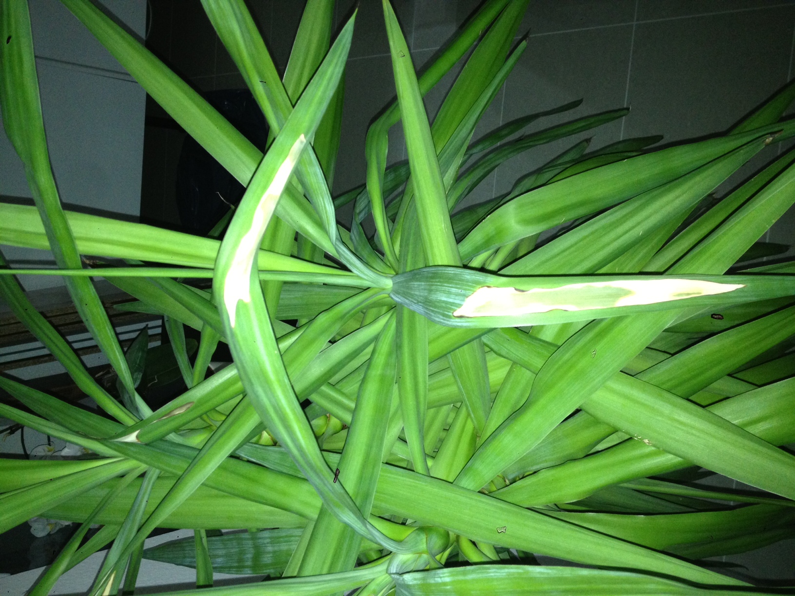 Die eine läßt immer mehr die Blätter hängen und die unteren werden immer bräunlicher. [...] Die andere verblasst von der Blattmitte her und die Blätter werden dort dann weiß.