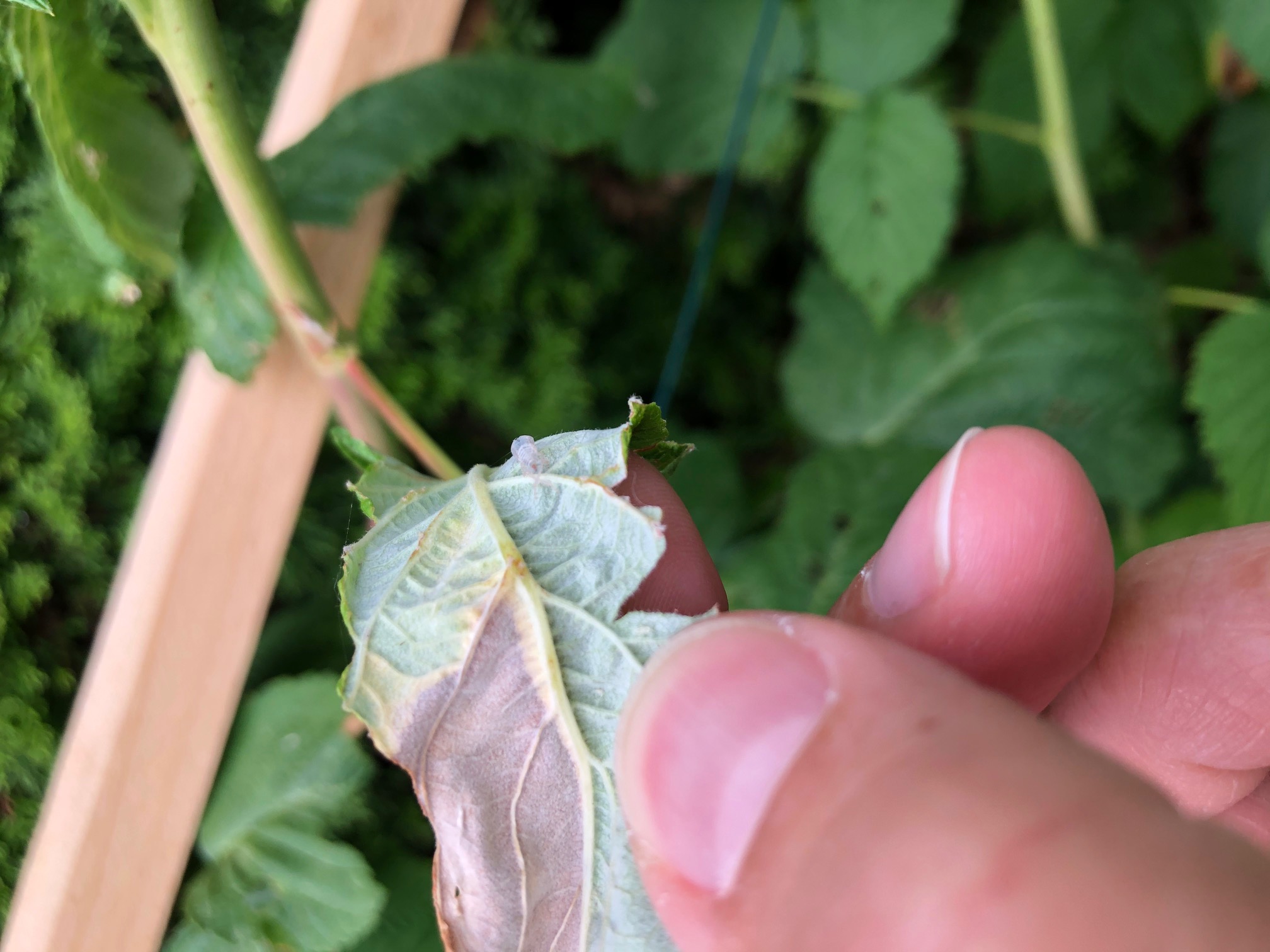 unsere Himbeere muss als Fressobjekt herhalten und teilweise werden die Blätter gelb. Und das an den 1-jährigen Trieben an denen ja kommendes Jahr die Früchte hängen sollen.