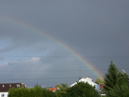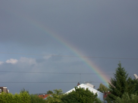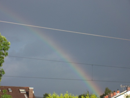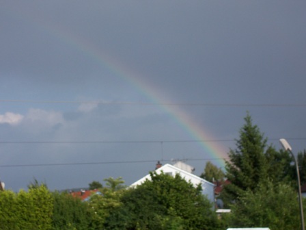 Beim Spaziergang pitschnass geworden - vor der Haustüre angekommen - Sonnenschein... und über die Schulter geblickt hab ich den entdeckt. In voller Größe war er leider nicht einzufangen! LG Distelchen Regenbogen.JPG (141.97 KB) Regenbogen.JPG Regenbogen1.JPG (146.64 KB) Regenbogen1.JPG