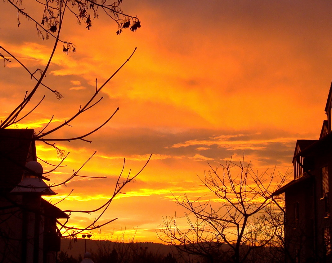 Ein wunderschöner oranger oder orangener (?) Himmel.