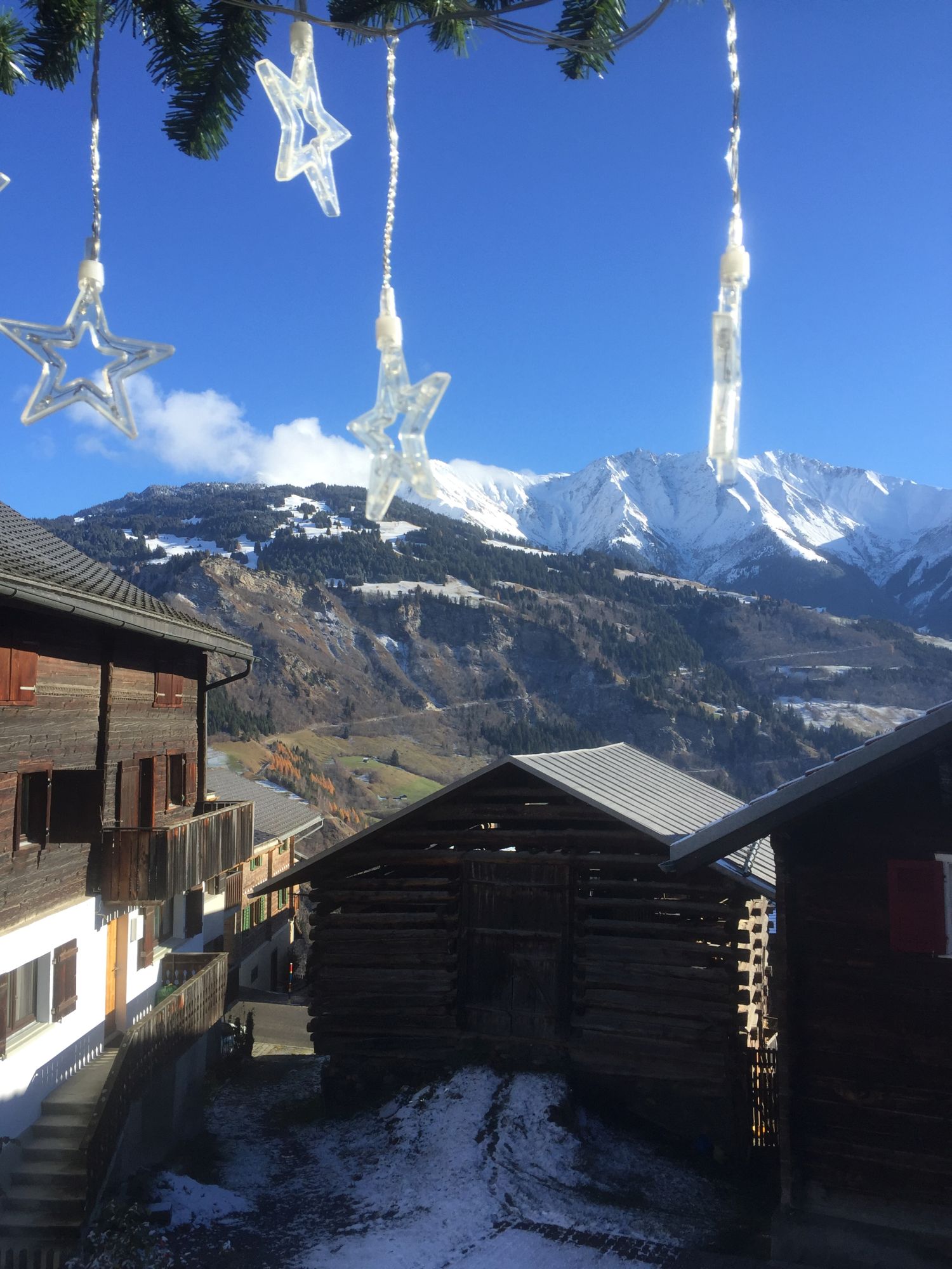 Heute Mittag , Blick vom Balkon und ja die Aussicht ist himmlisch. Im Vordergrund schon die Adventsbeleuchtung, die seit vergangenen Samstag abends einschaltet und morgens automatisch ausgeht. Ist zwar noch nicht der 1. Advent, aber die Adventszeit ist dieses Jahr etwas kurz.