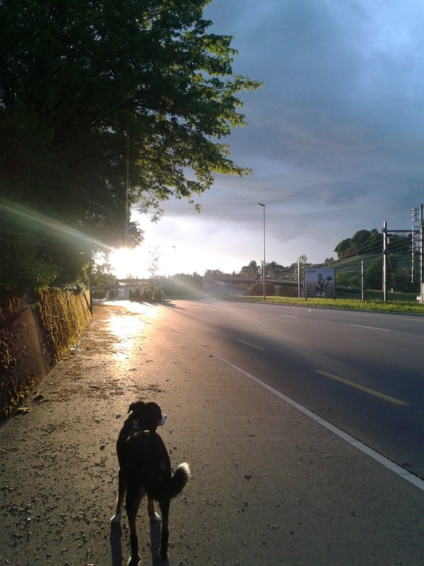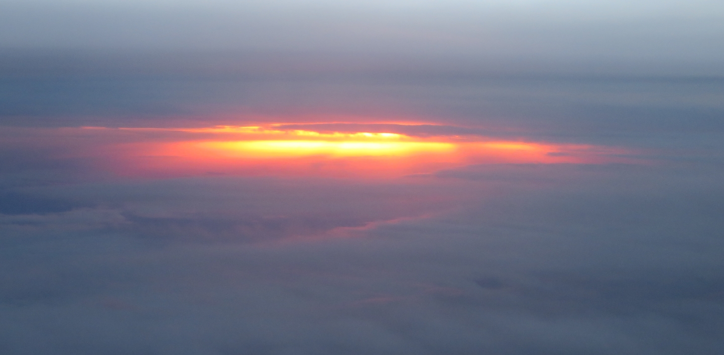 Der dunkle Strich quer durch das Bild ist der Schatten eines Kondensstreifens: