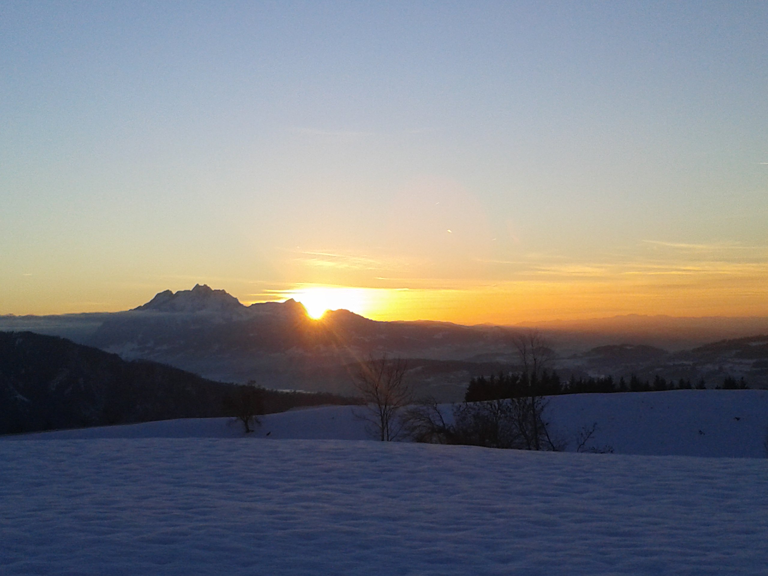 Sonnenuntergang mit Blick auf den Pilatus, vom Zugerberg aus gesehen: