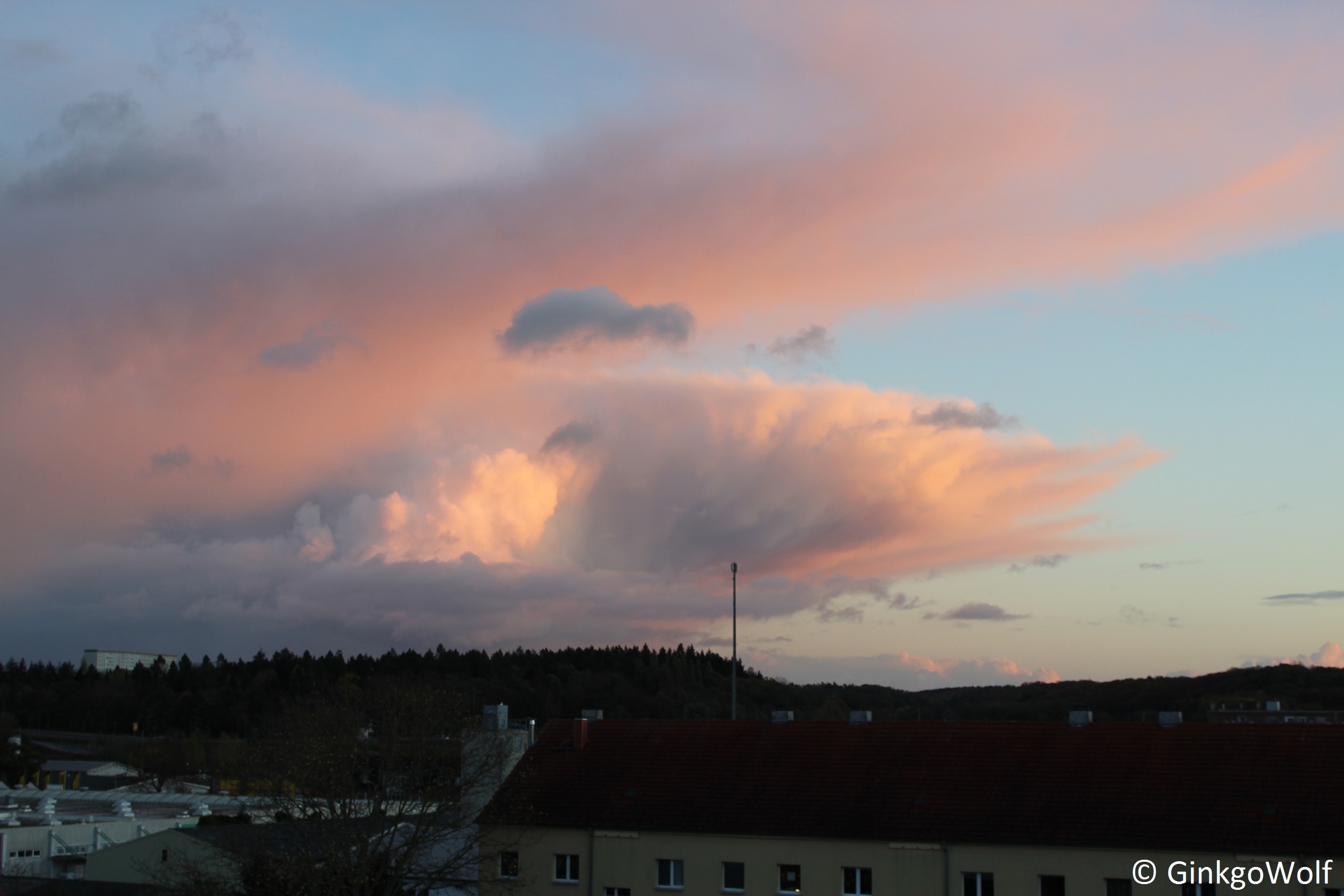 Heute Mittag , Blick vom Balkon und ja die Aussicht ist himmlisch. Im Vordergrund schon die Adventsbeleuchtung, die seit vergangenen Samstag abends einschaltet und morgens automatisch ausgeht. Ist zwar noch nicht der 1. Advent, aber die Adventszeit ist dieses Jahr etwas kurz.