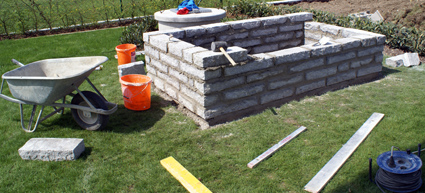 Auf das Fundament aufgeschlichtet und leicht anbetoniert wurden dann die Natursteine bis zu einer Höhe von 60 cm.
