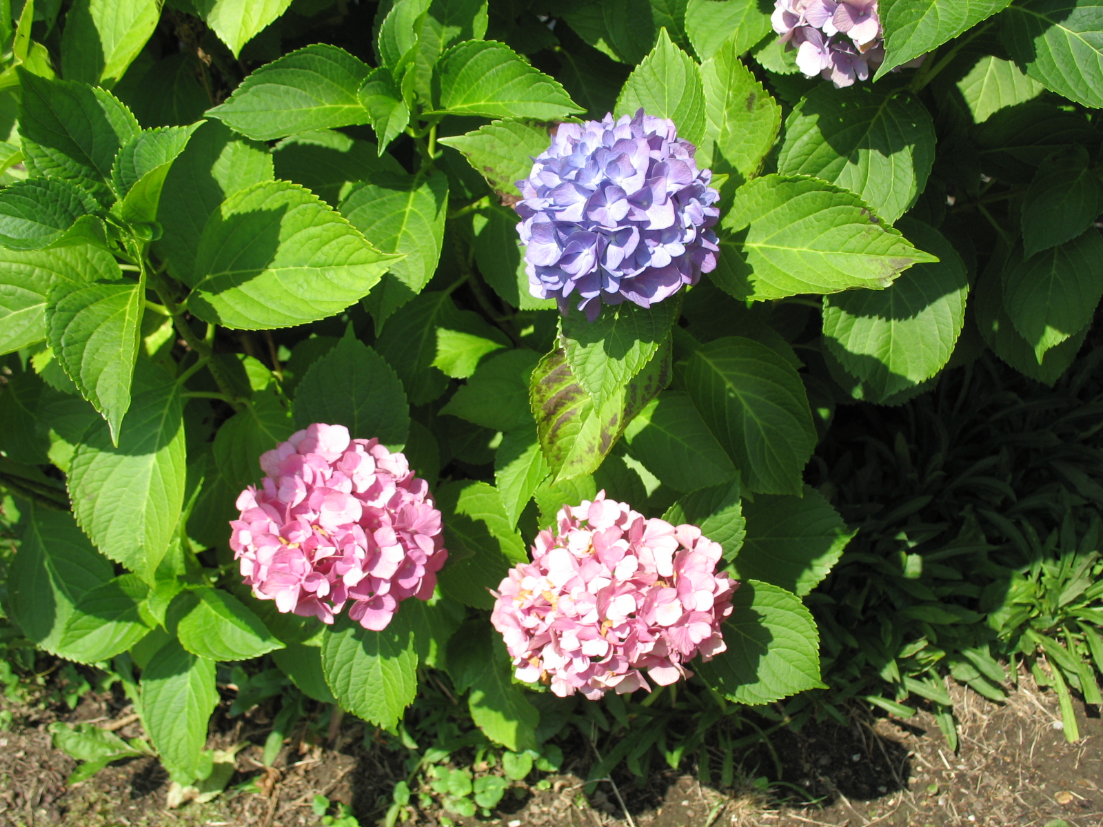 Ich freu mich darüber, dass einer meiner großen Hortensiensträucher jetzt plötzlich einige blaue Blütenballen hat (s.Bild) -
